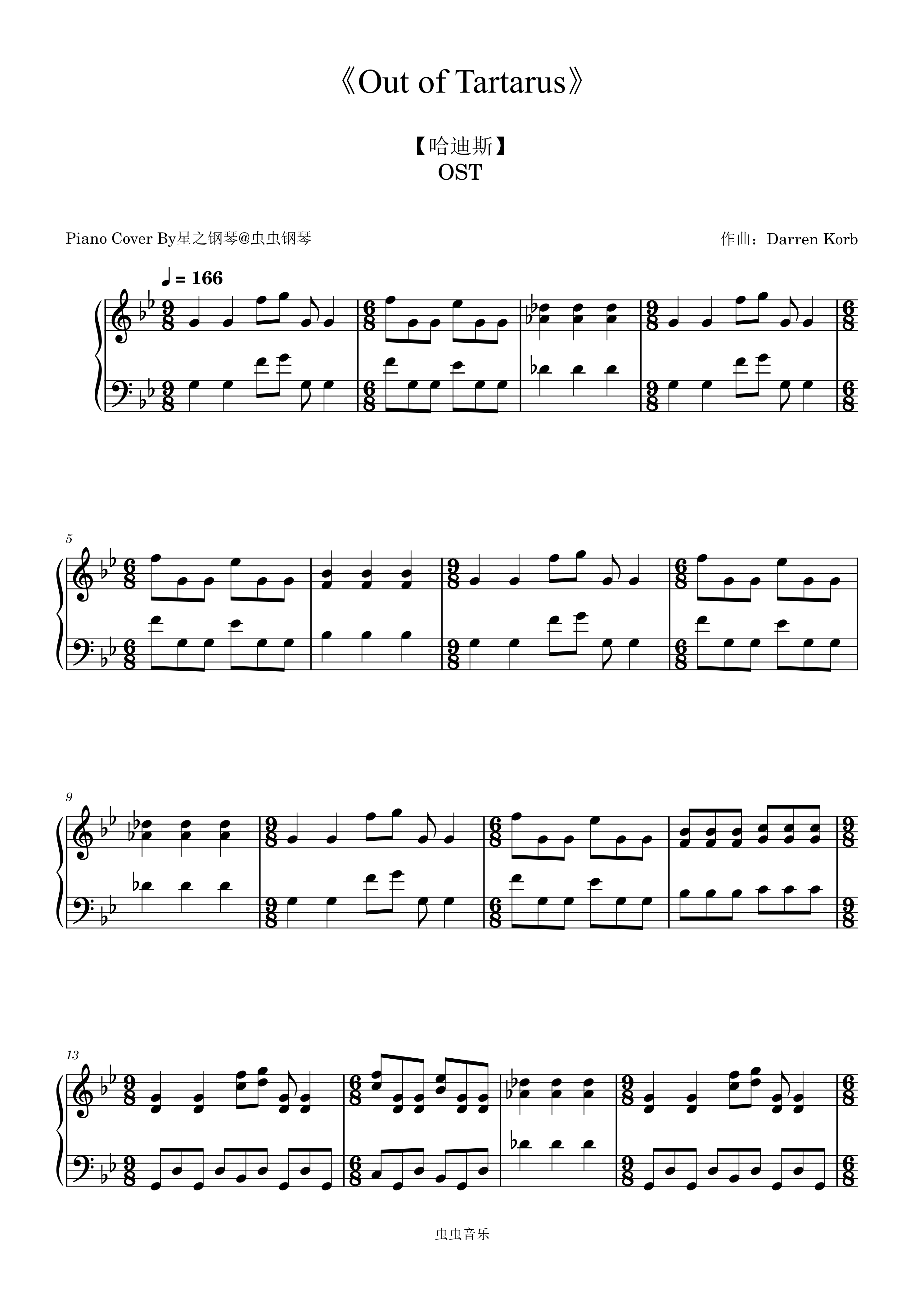 钢琴谱:【哈迪斯】《Out of Tartarus》还原钢琴谱~星之钢琴~