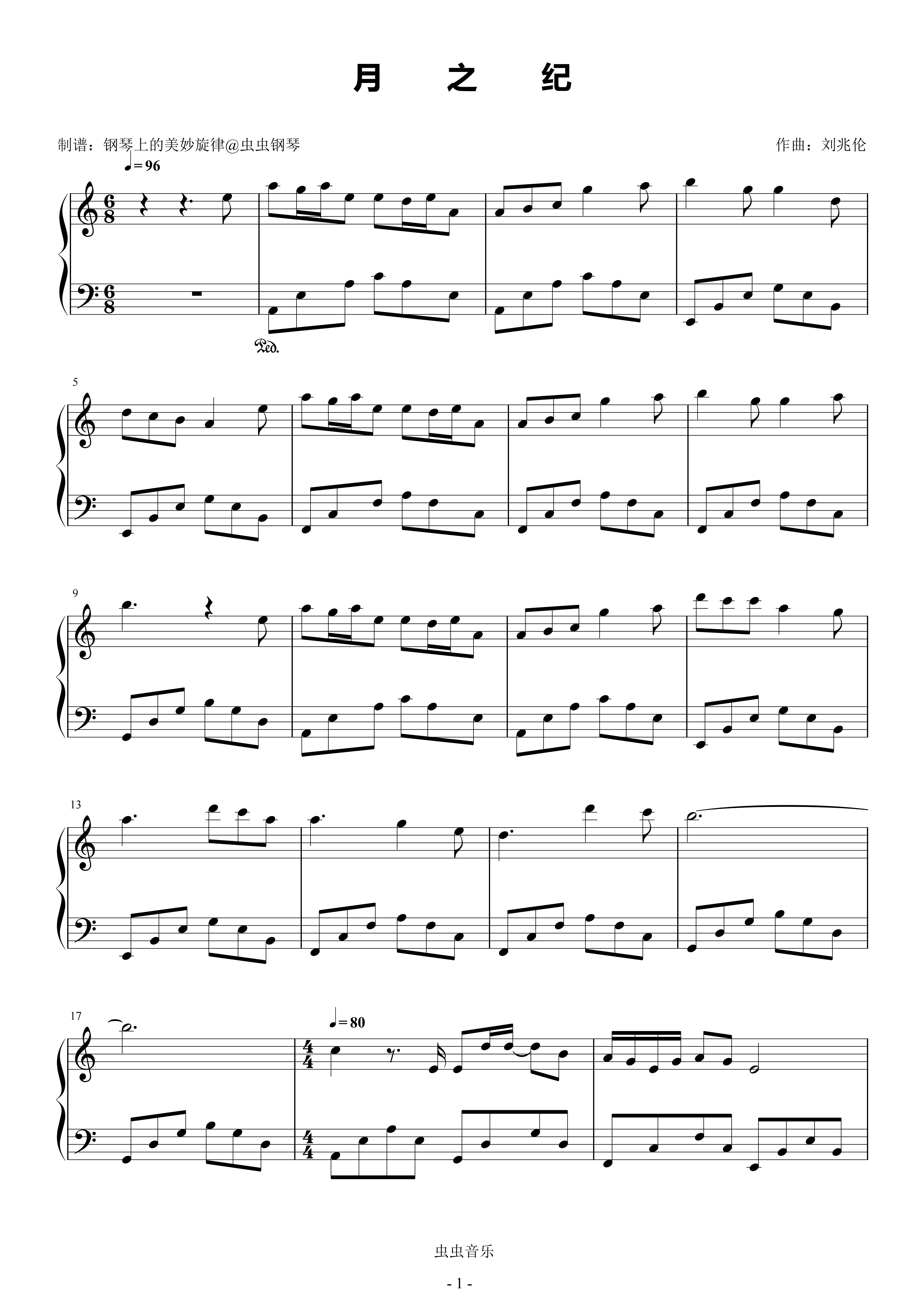 月之纪钢琴简谱 数字双手