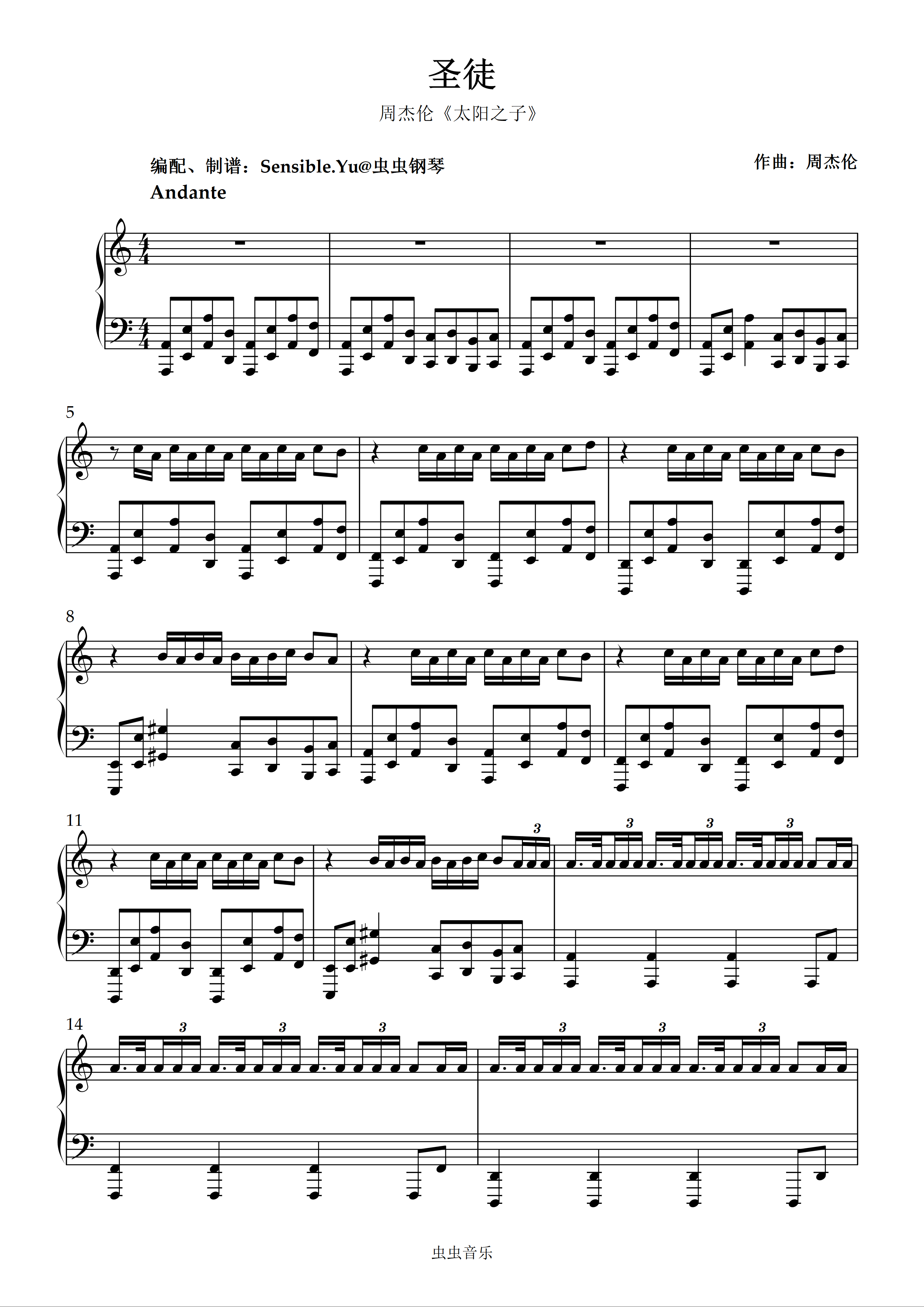 钢琴谱:《圣徒》——周杰伦(Sensible.Yu改编)