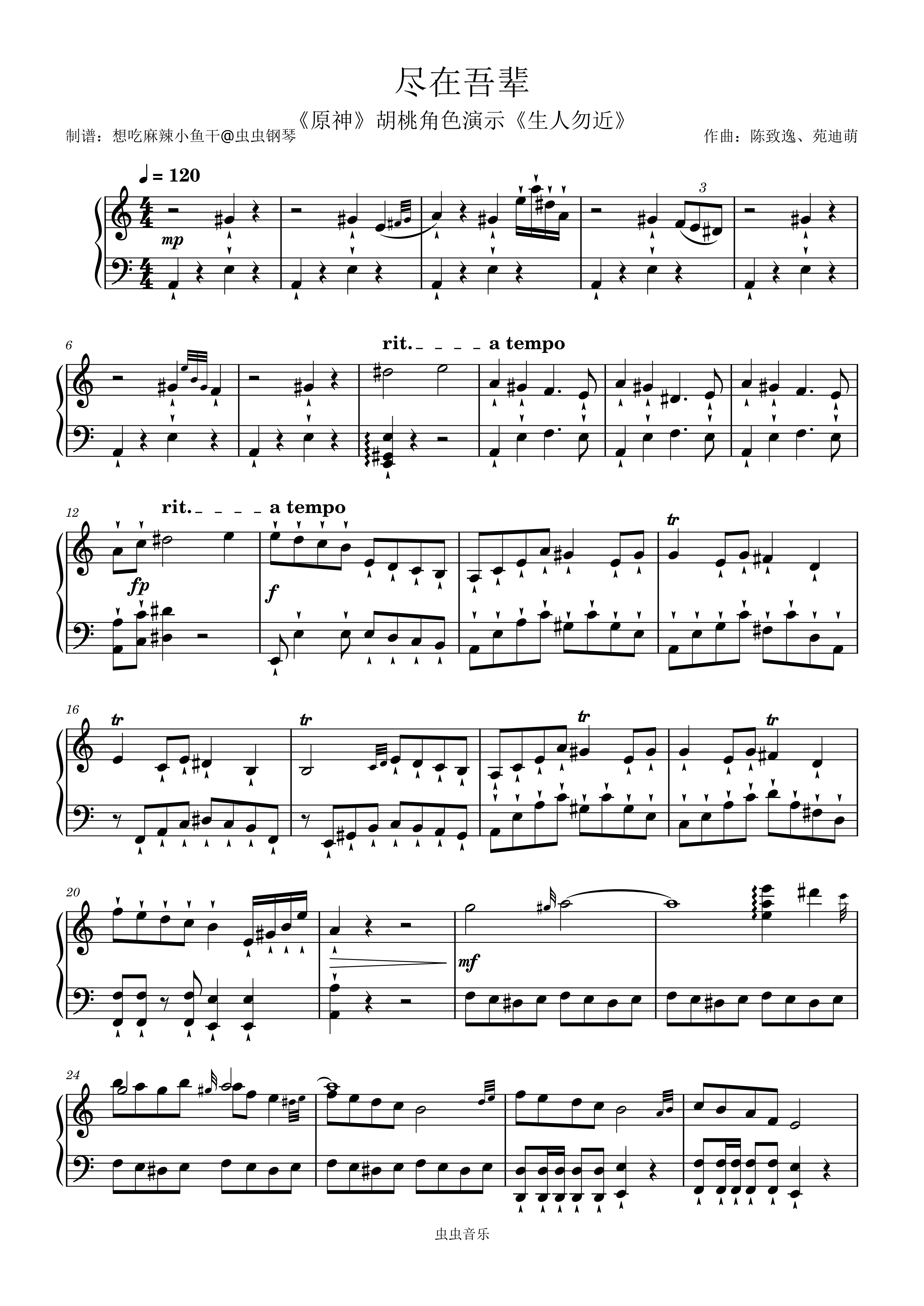 钢琴谱:尽在吾辈(《原神》胡桃角色演示《生人勿近》)