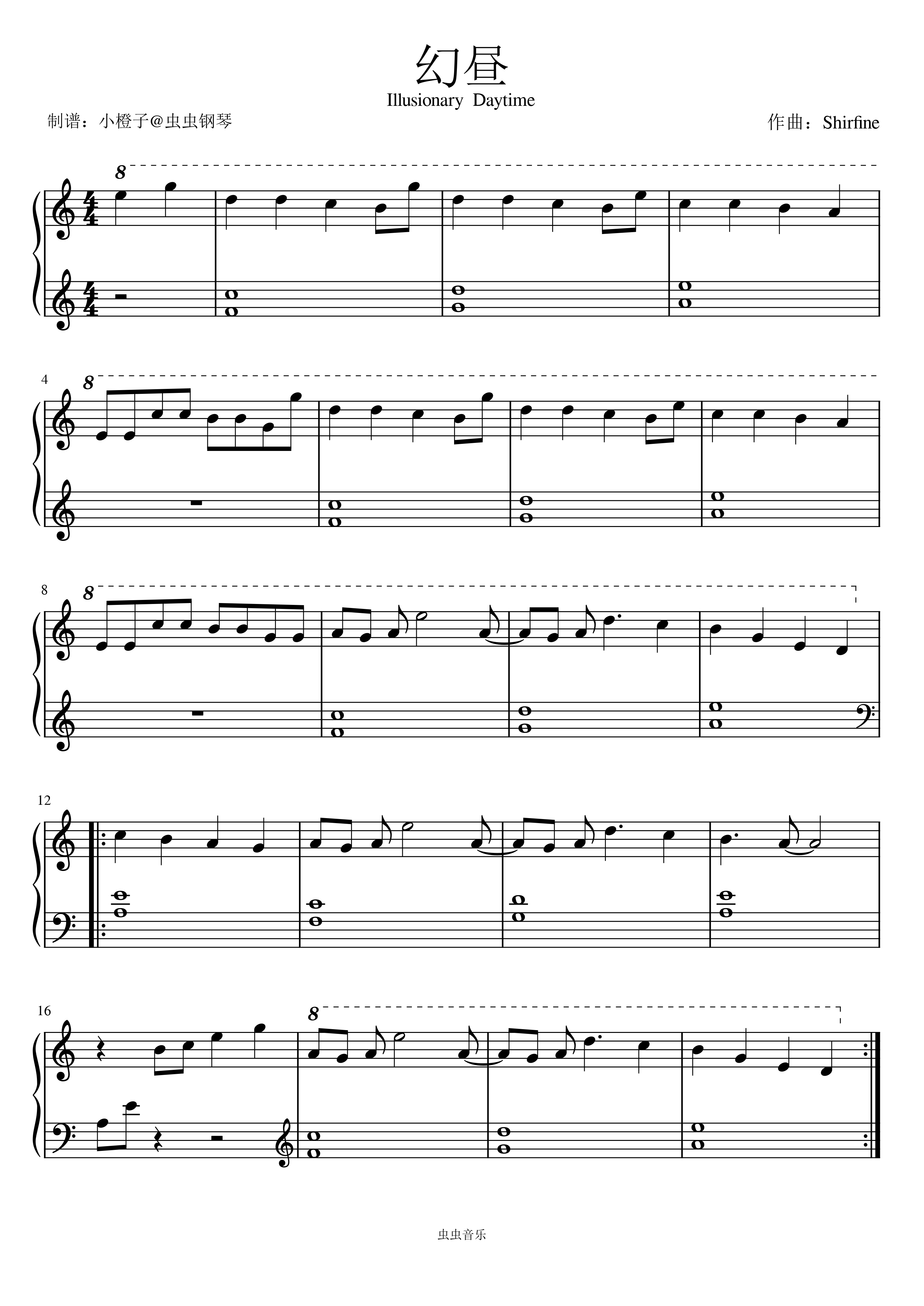 • 幻昼钢琴简谱 C调 数字双手