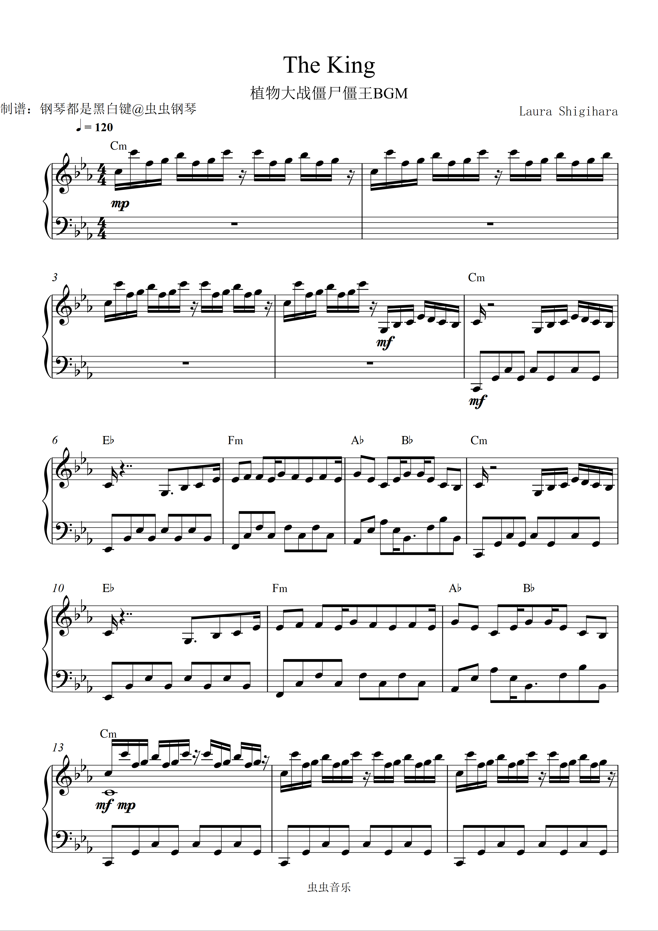 钢琴谱:The King《最后攻势の小曲》植物大战僵尸僵王BGM