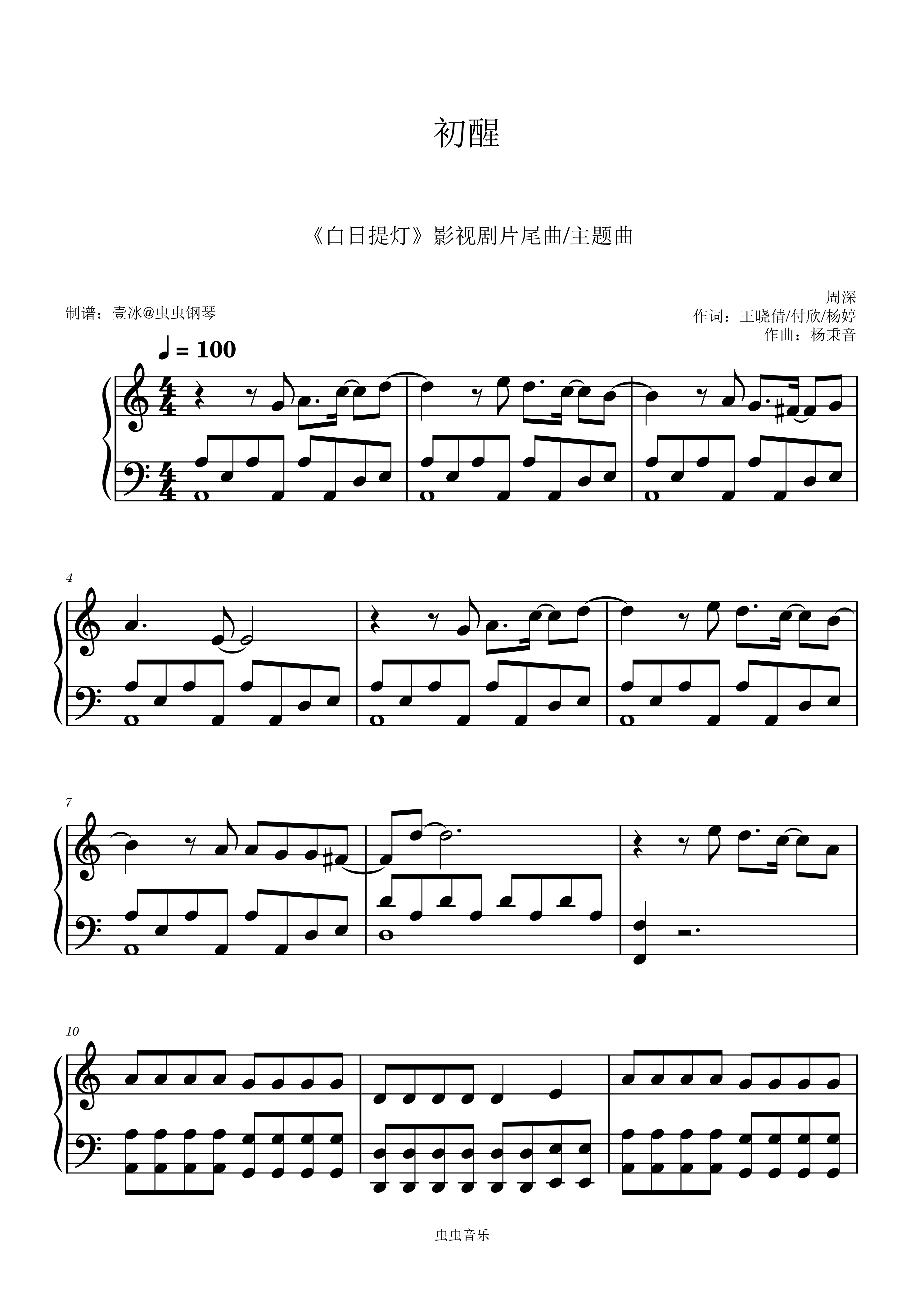 钢琴谱:初醒 (《白日提灯》影视剧片尾曲/主题曲) - 周深 C调