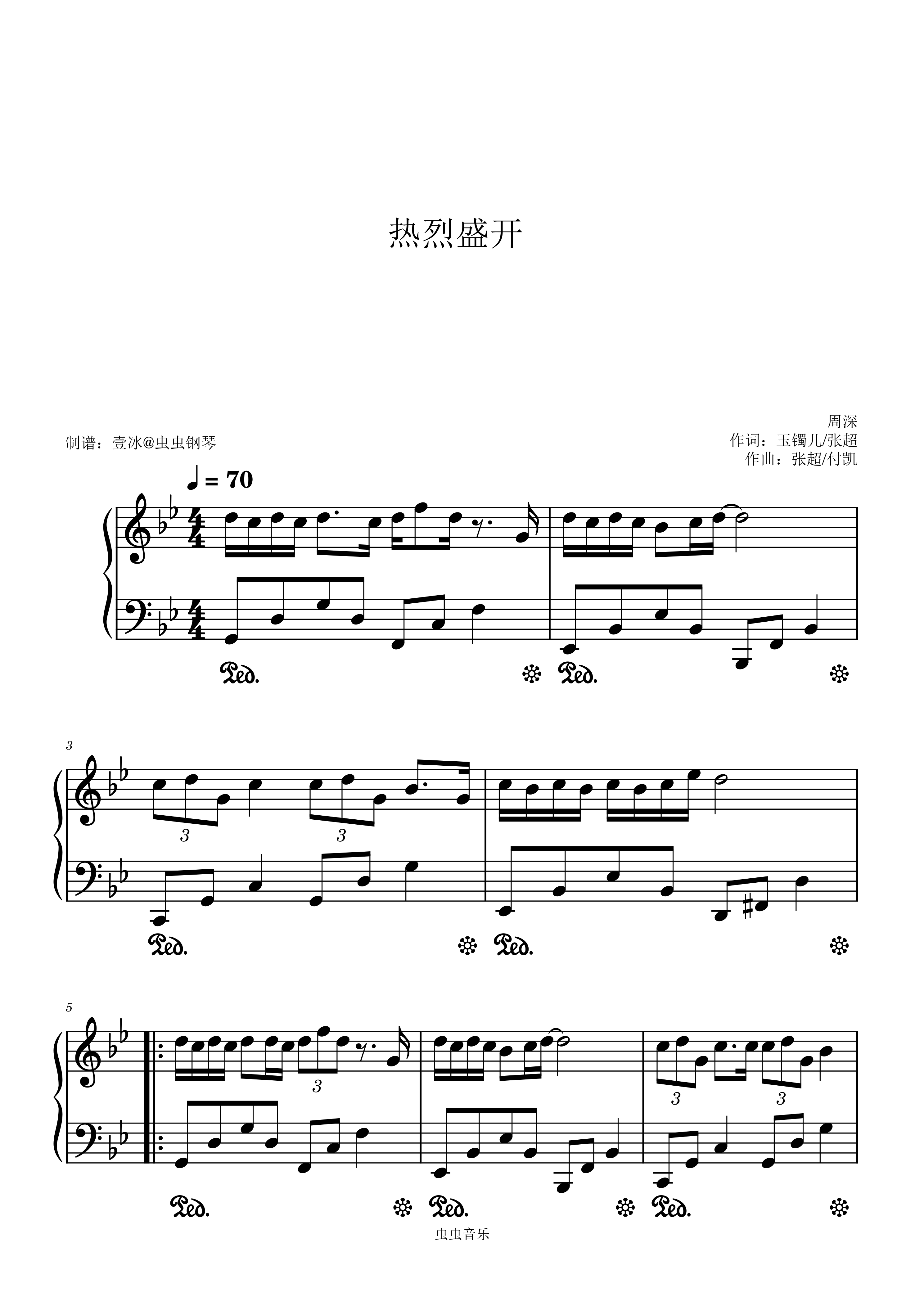 • 紫荆花盛开钢琴简谱 C调 数字双手 卢文韬/一白/李伟