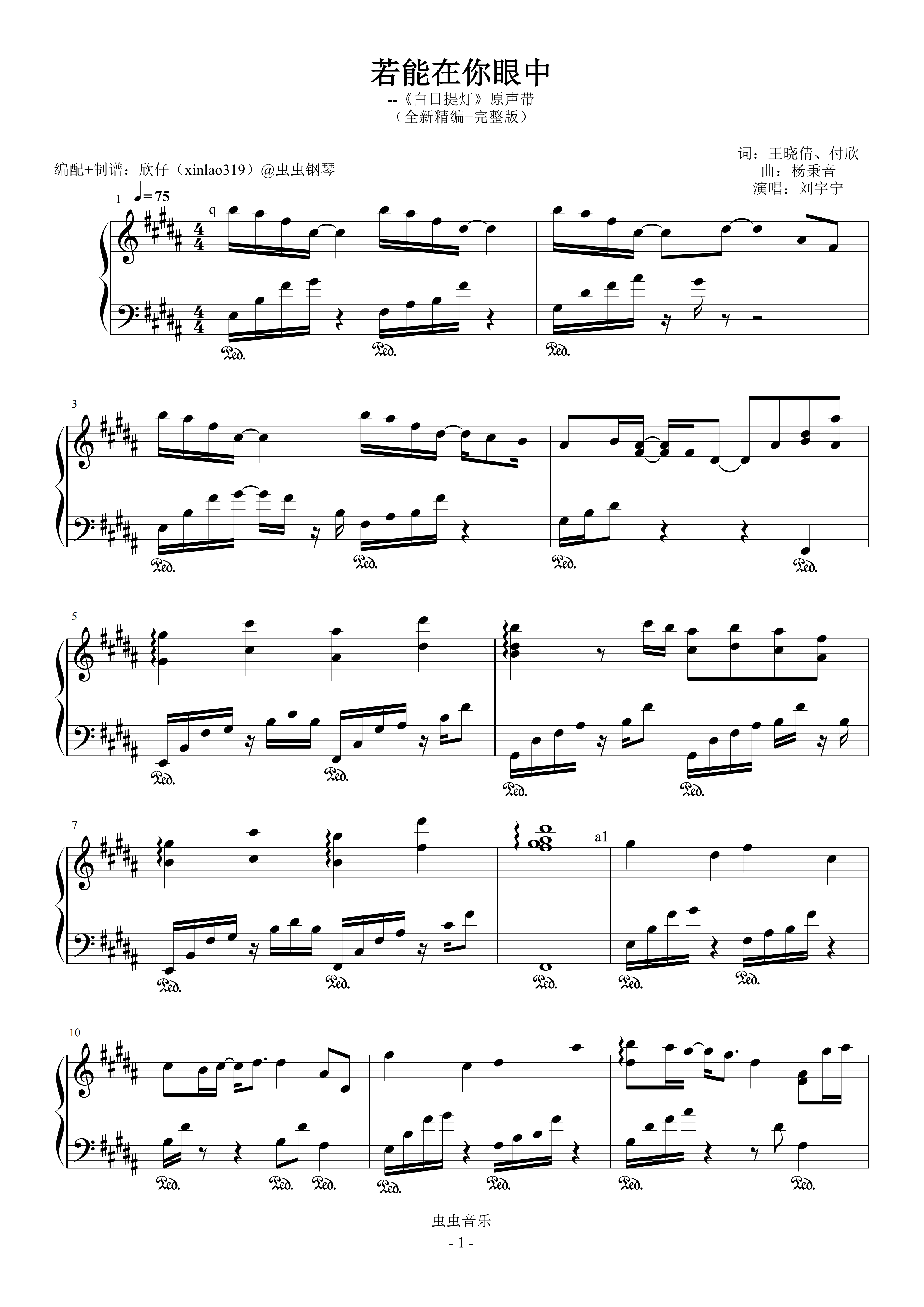 钢琴谱:若能在你眼中(原调B、刘宇宁《白日提灯》原声带、完整版)