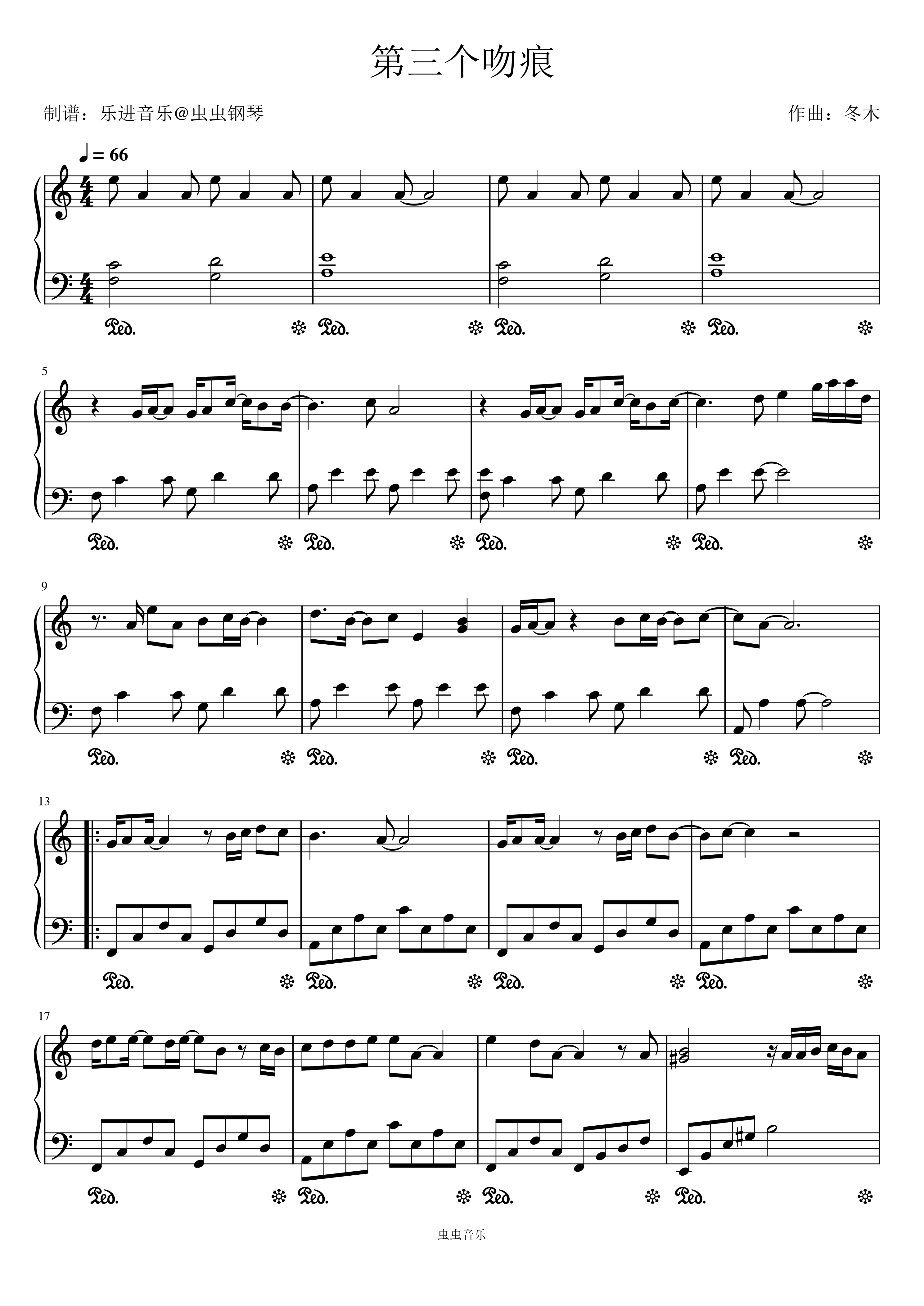 钢琴谱:第三个吻痕