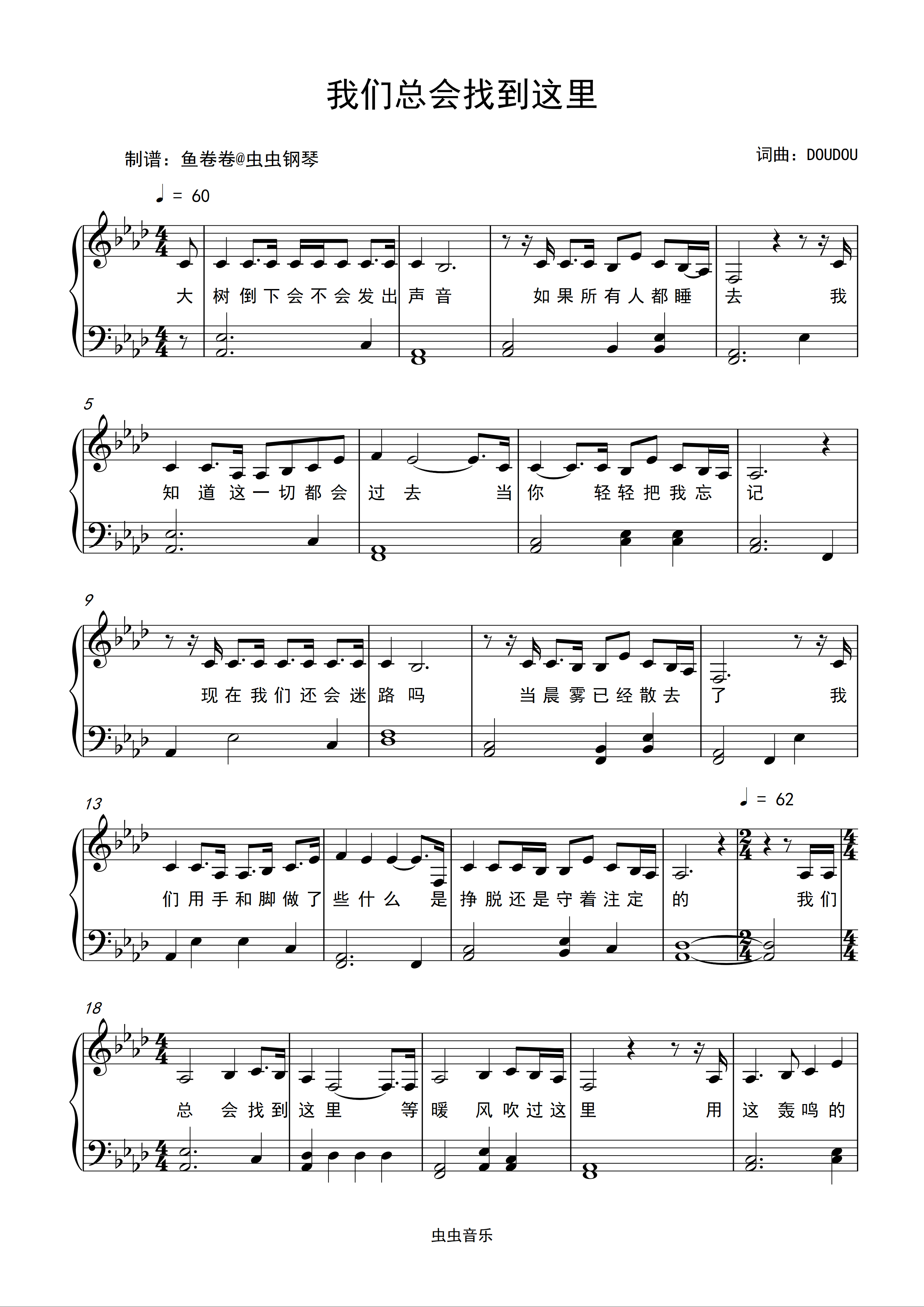我们总会找到这里钢琴简谱 数字双手 DOUDOU