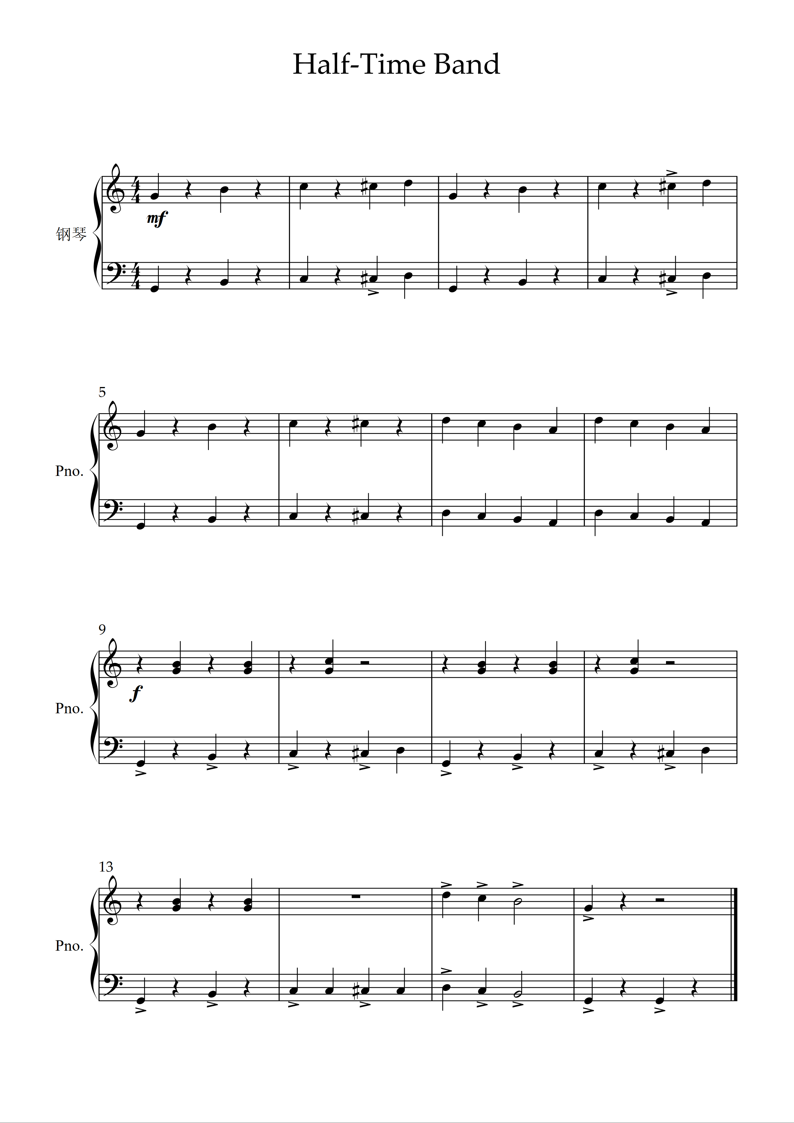 钢琴谱:Half-Time Band