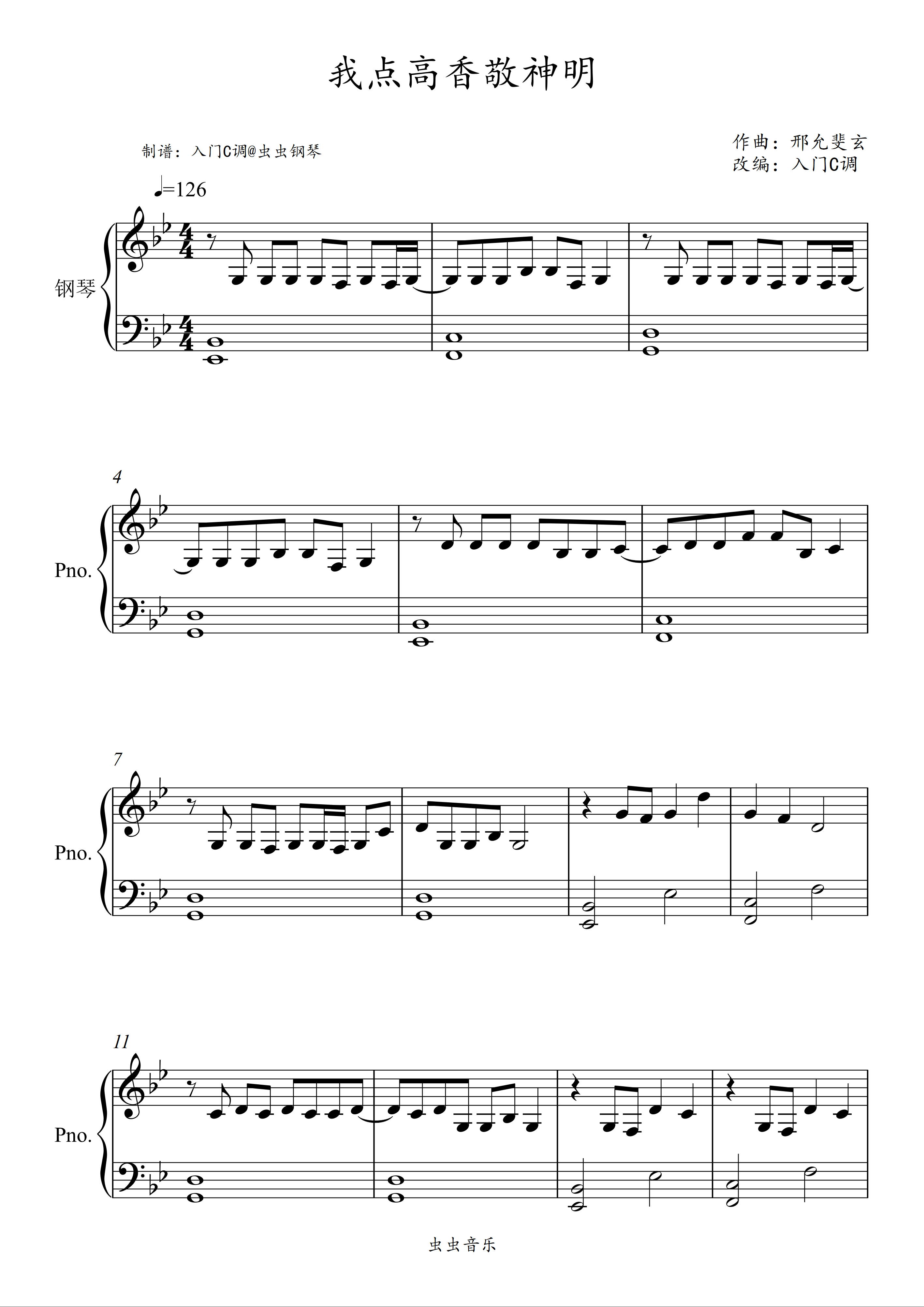 钢琴谱:我点高香敬神明 -指尖笑【原调简单入门版】