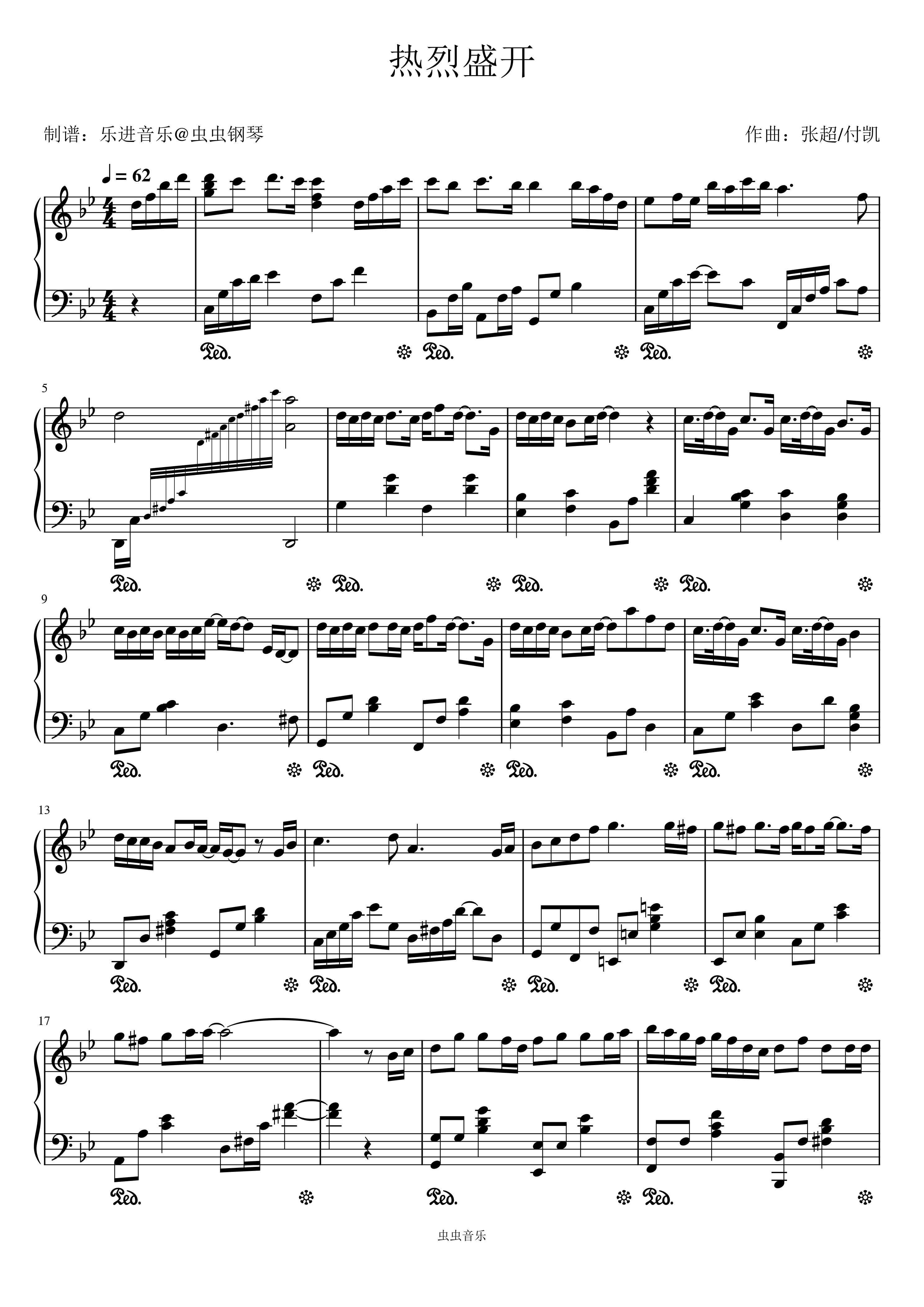 • 紫荆花盛开钢琴简谱 B调 数字双手