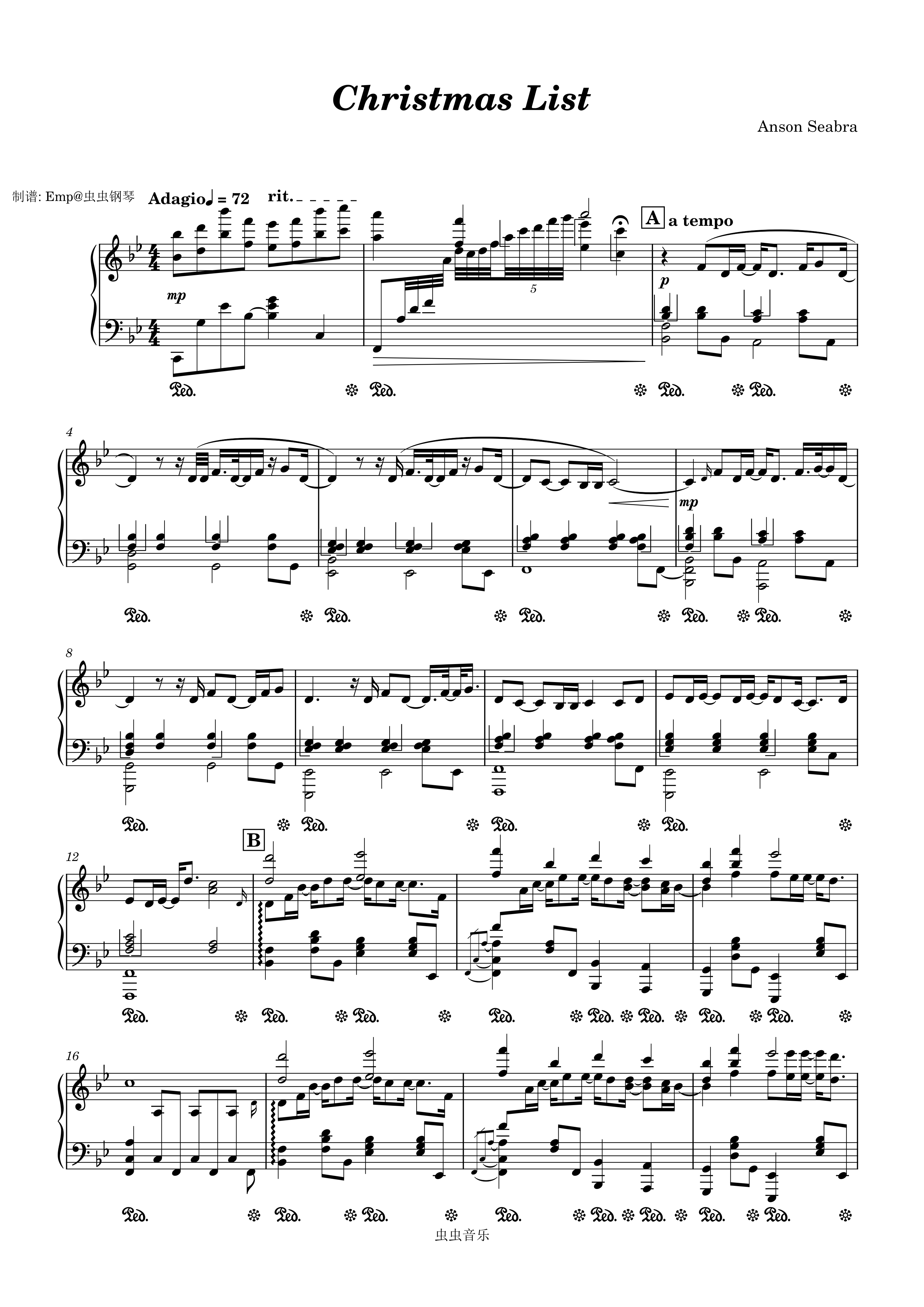 Christmas List钢琴简谱 数字双手 Anson Seabra