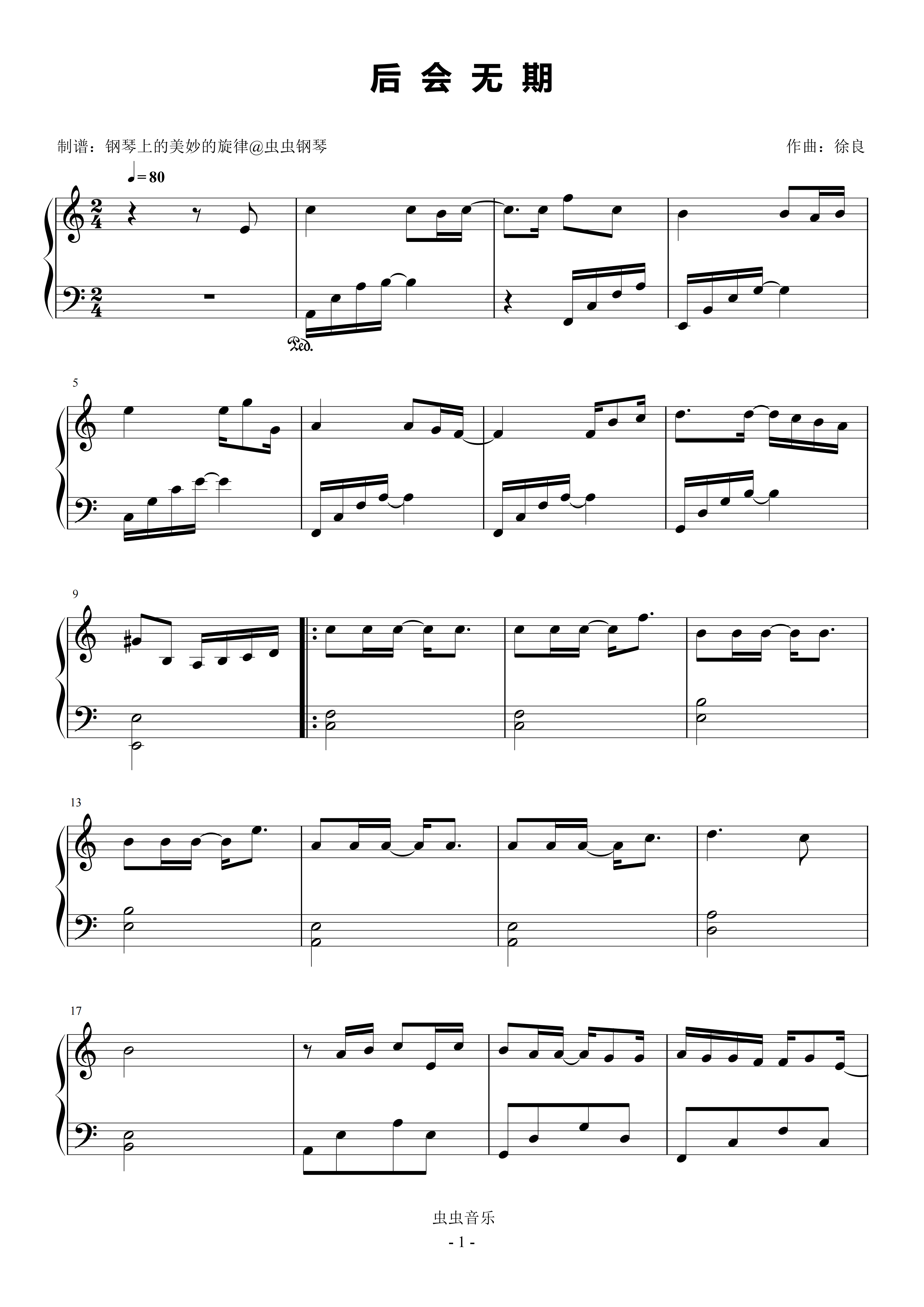 • 后会无期钢琴简谱 C调 数字双手 韩寒