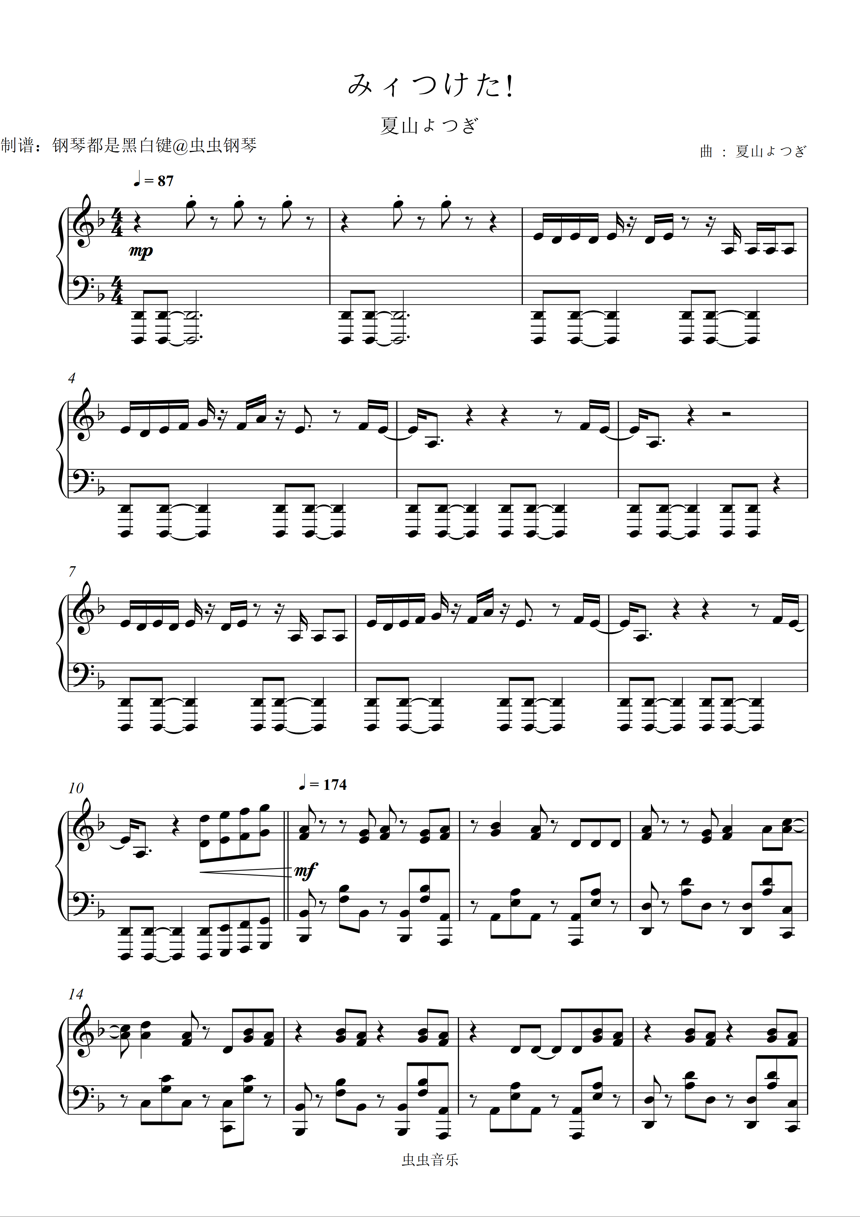 钢琴谱:【夏山よつぎ】みィつけた!(找到你了!)