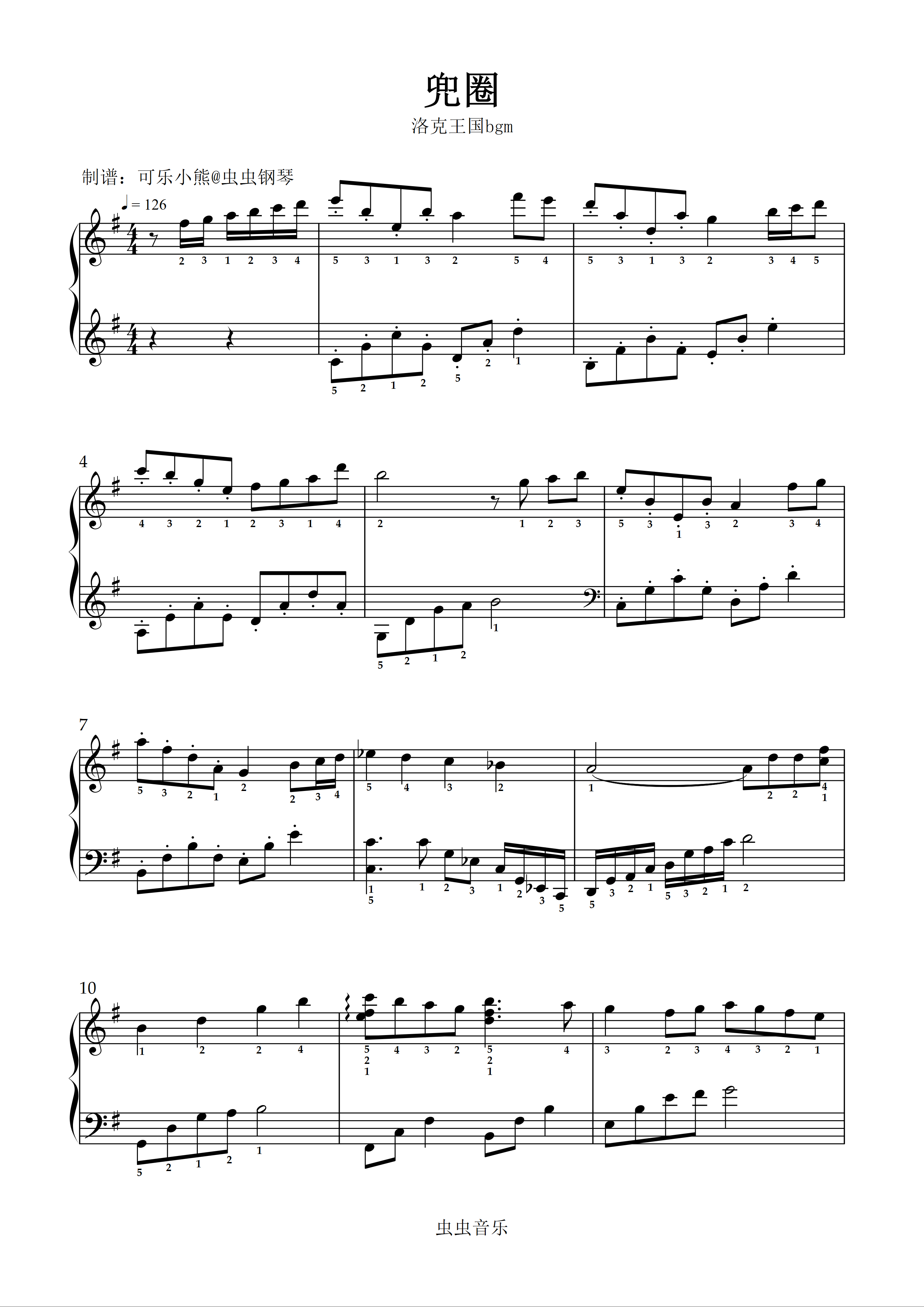 兜圈洛克王国bgm钢琴简谱 数字双手