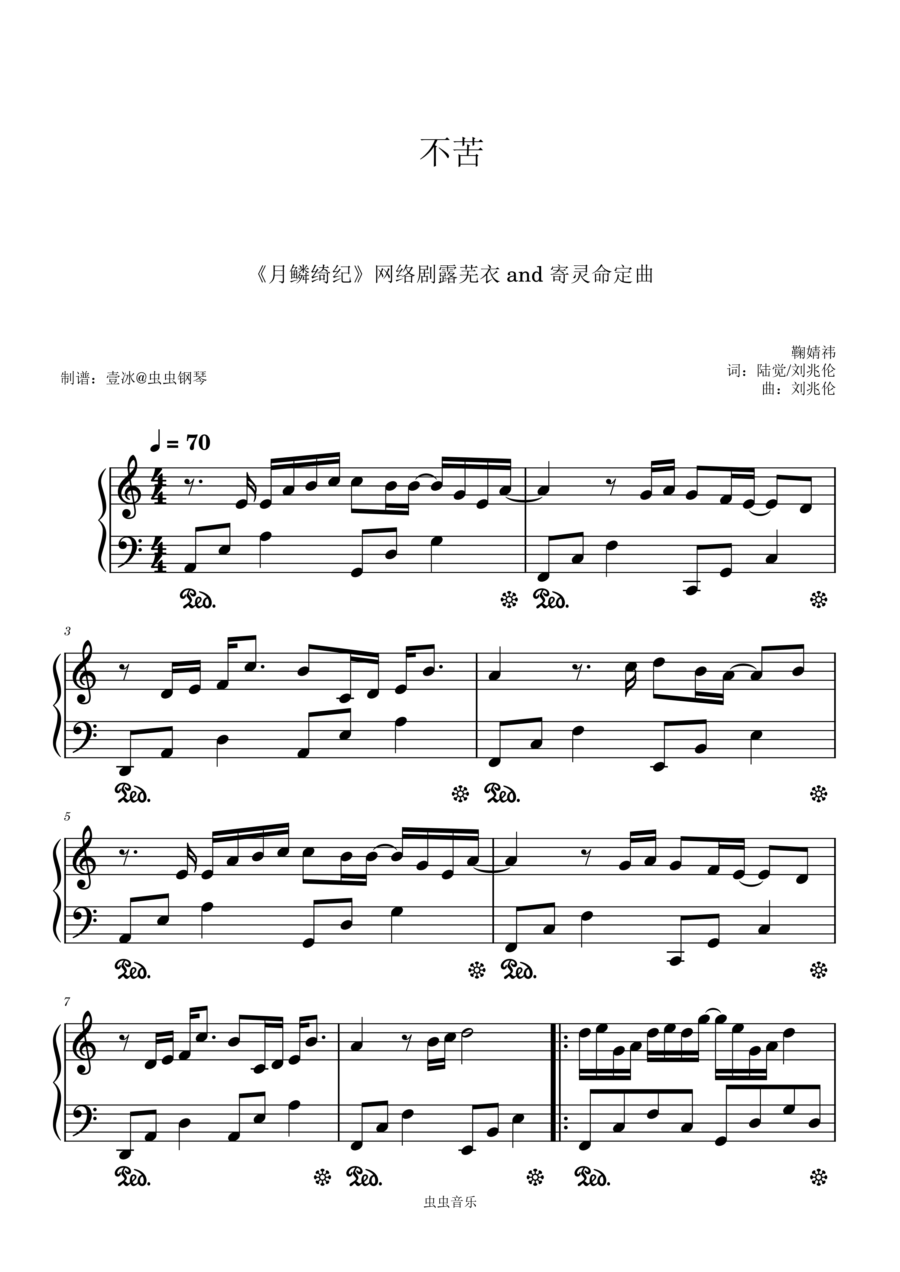 钢琴谱:不苦 (《月鳞绮纪》网络剧露芜衣 and 寄灵命定曲) - 鞠婧祎 C调