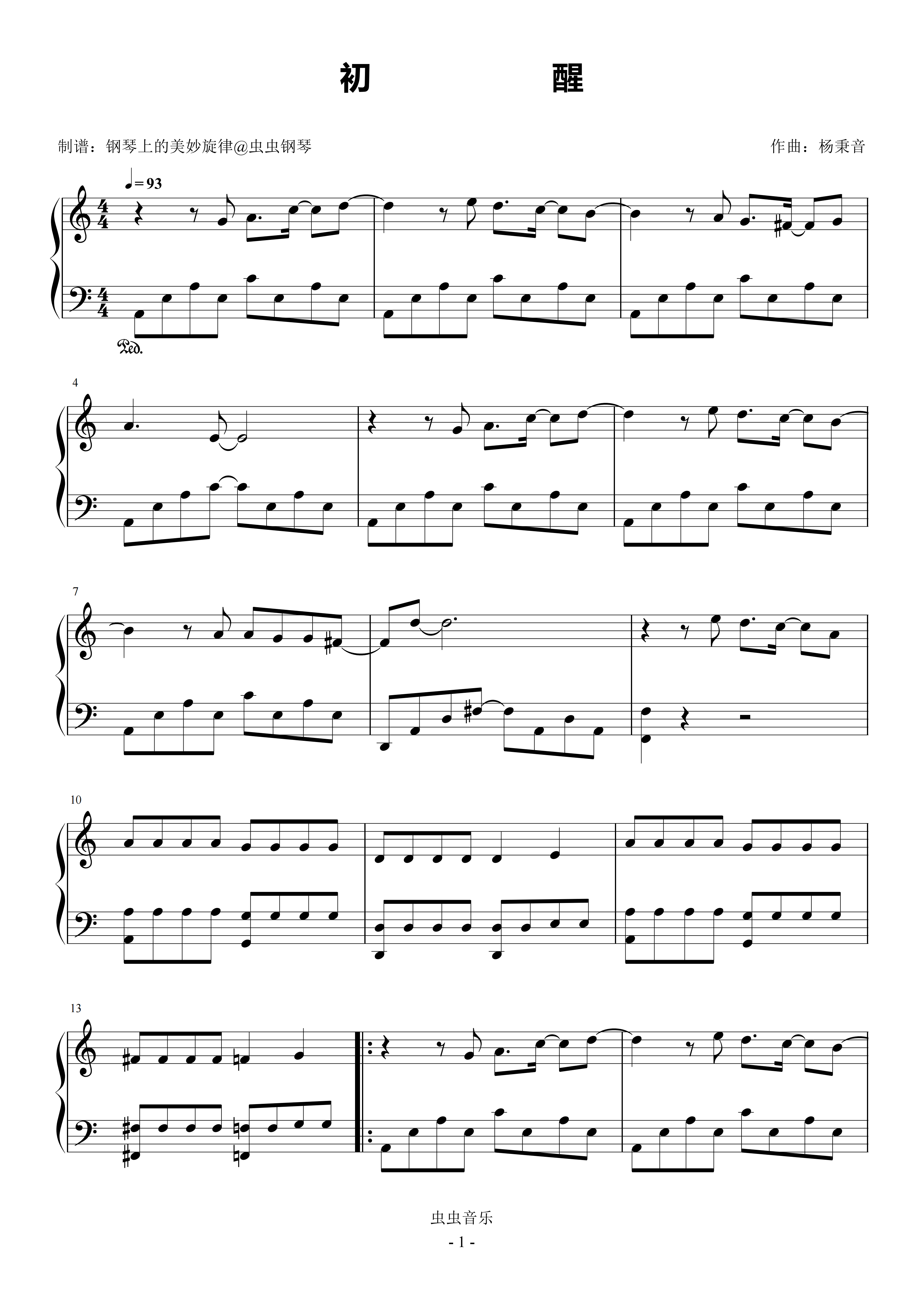 钢琴谱:初醒 C调简易版 周深 白日提灯