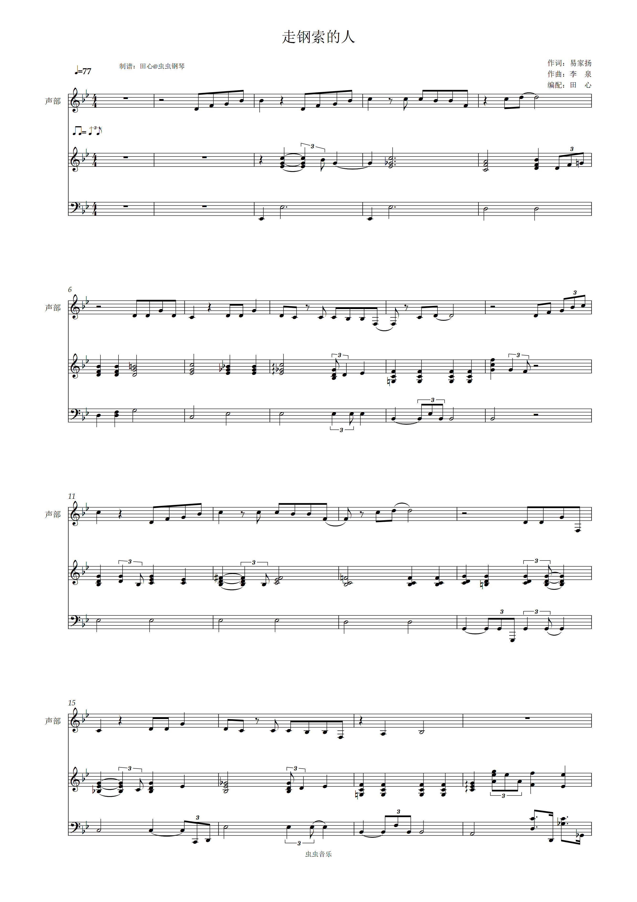 钢琴谱:走钢索的人-李泉 降b大调