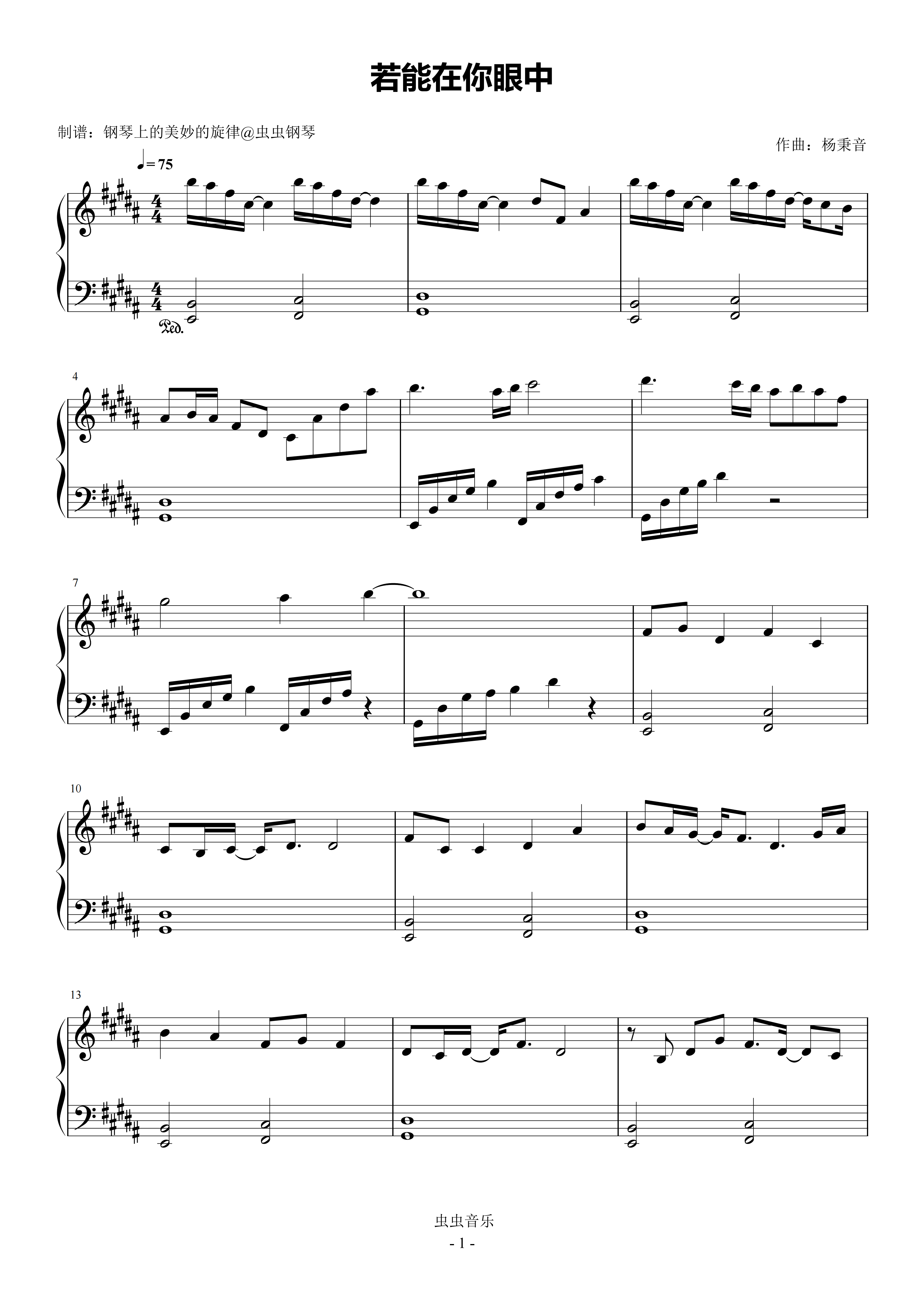 钢琴谱:若能在你眼中 原调简易版 刘宇宁 白日提灯