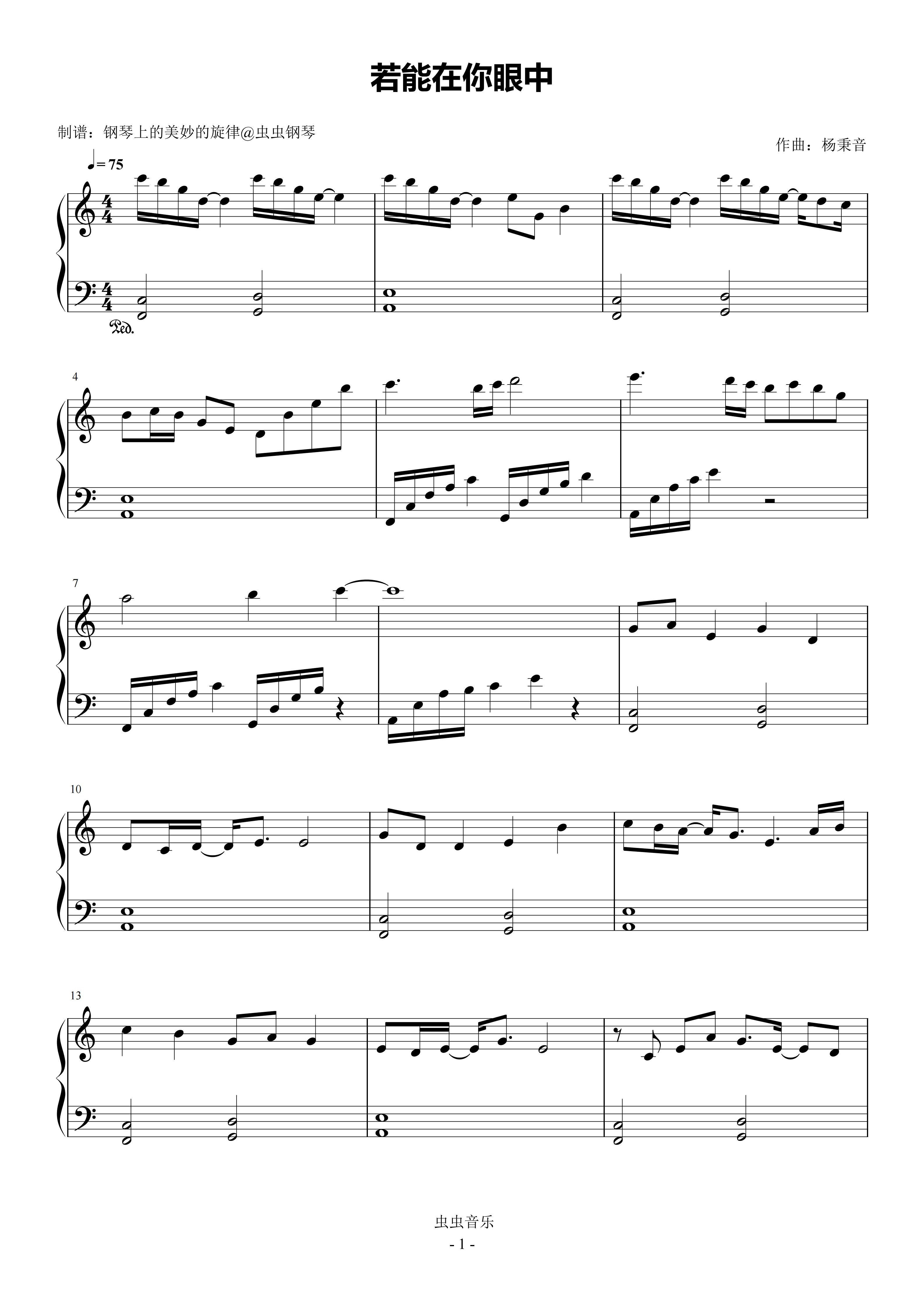 钢琴谱:若能在你眼中 C调简易版 刘宇宁 白日提灯