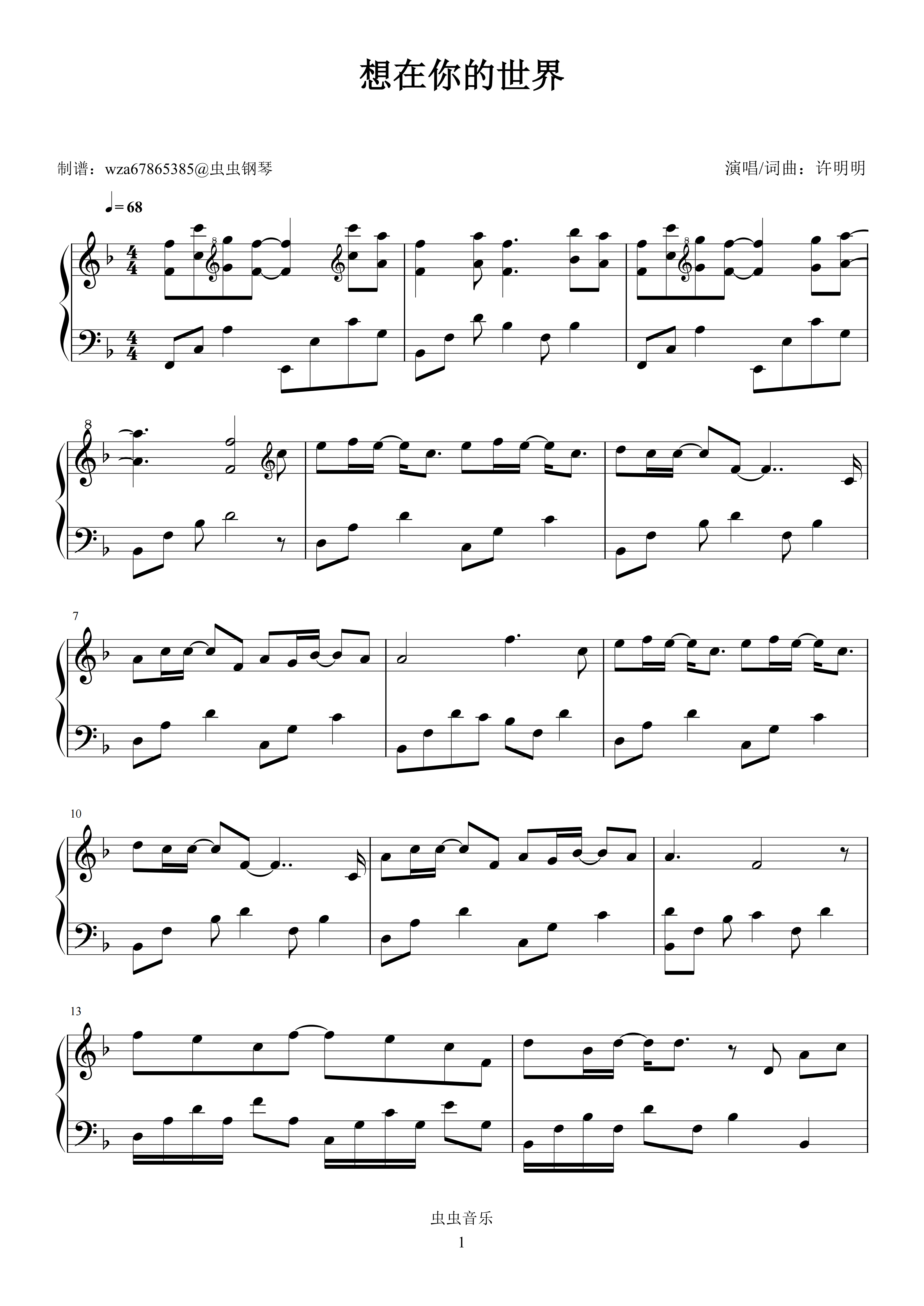 钢琴谱:想在你的世界
