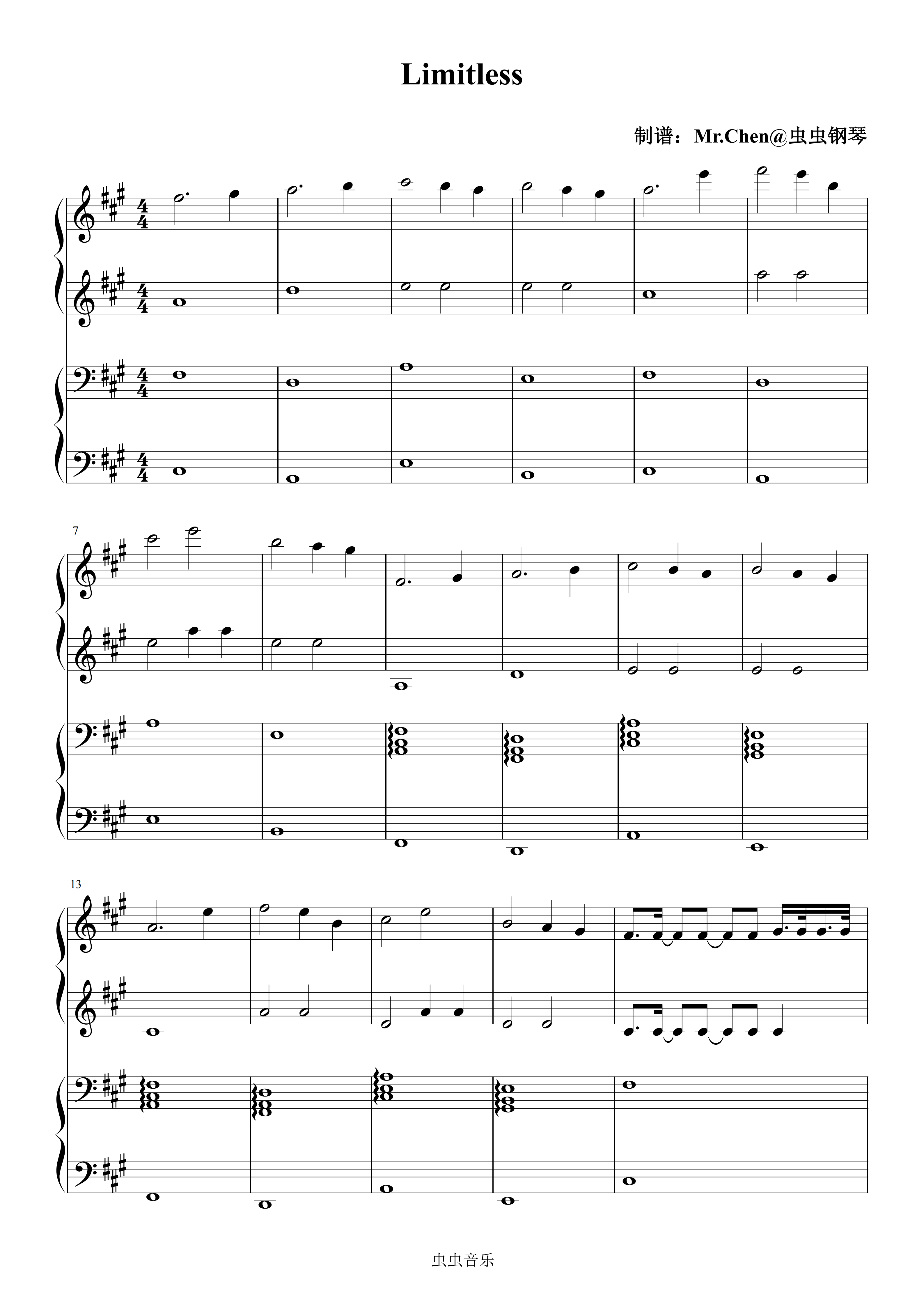 钢琴谱:Limitless (四手联弹)- SeVen.13 抖音神曲