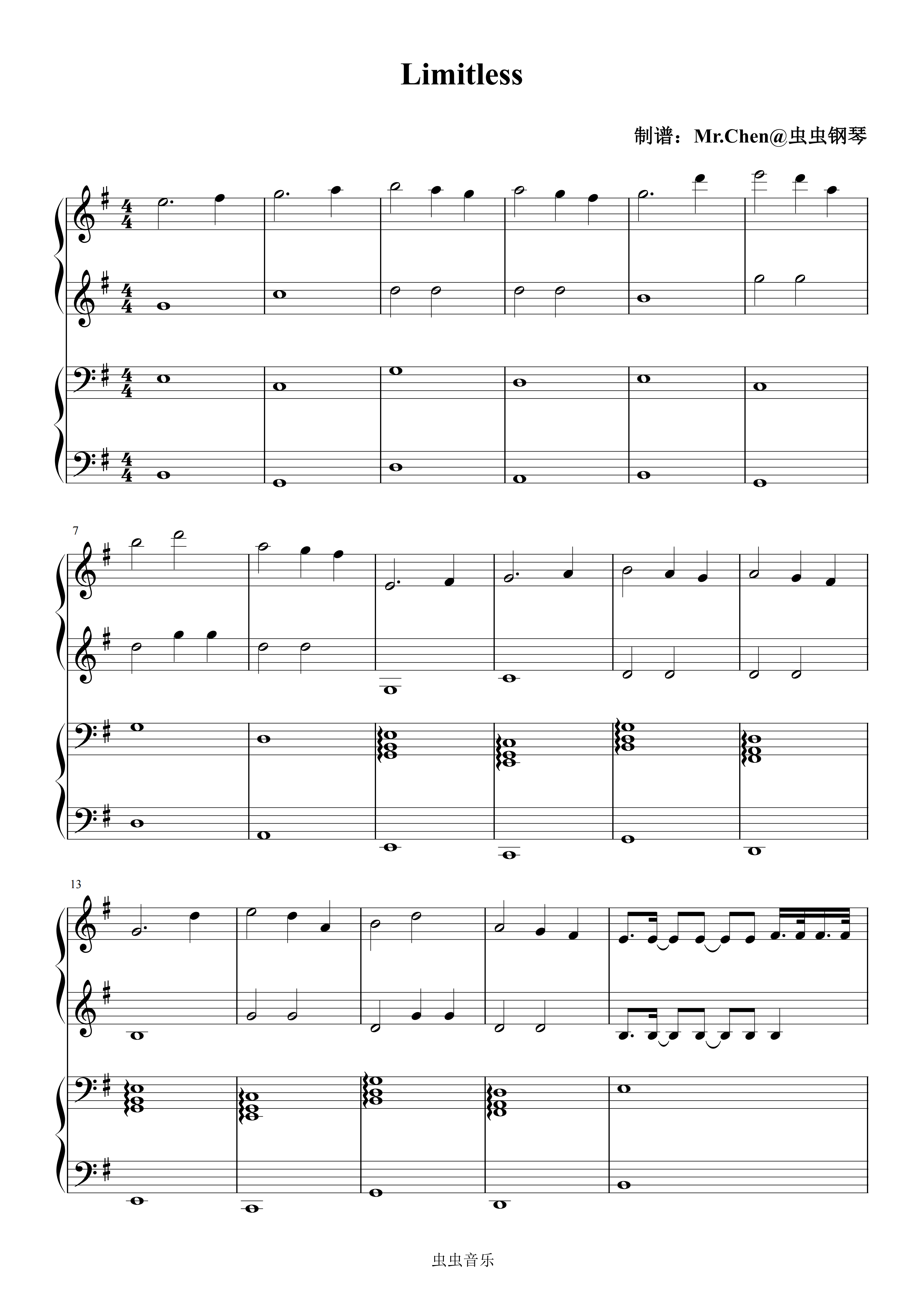 钢琴谱:Limitless (四手联弹)G调 - SeVen.13 抖音神曲