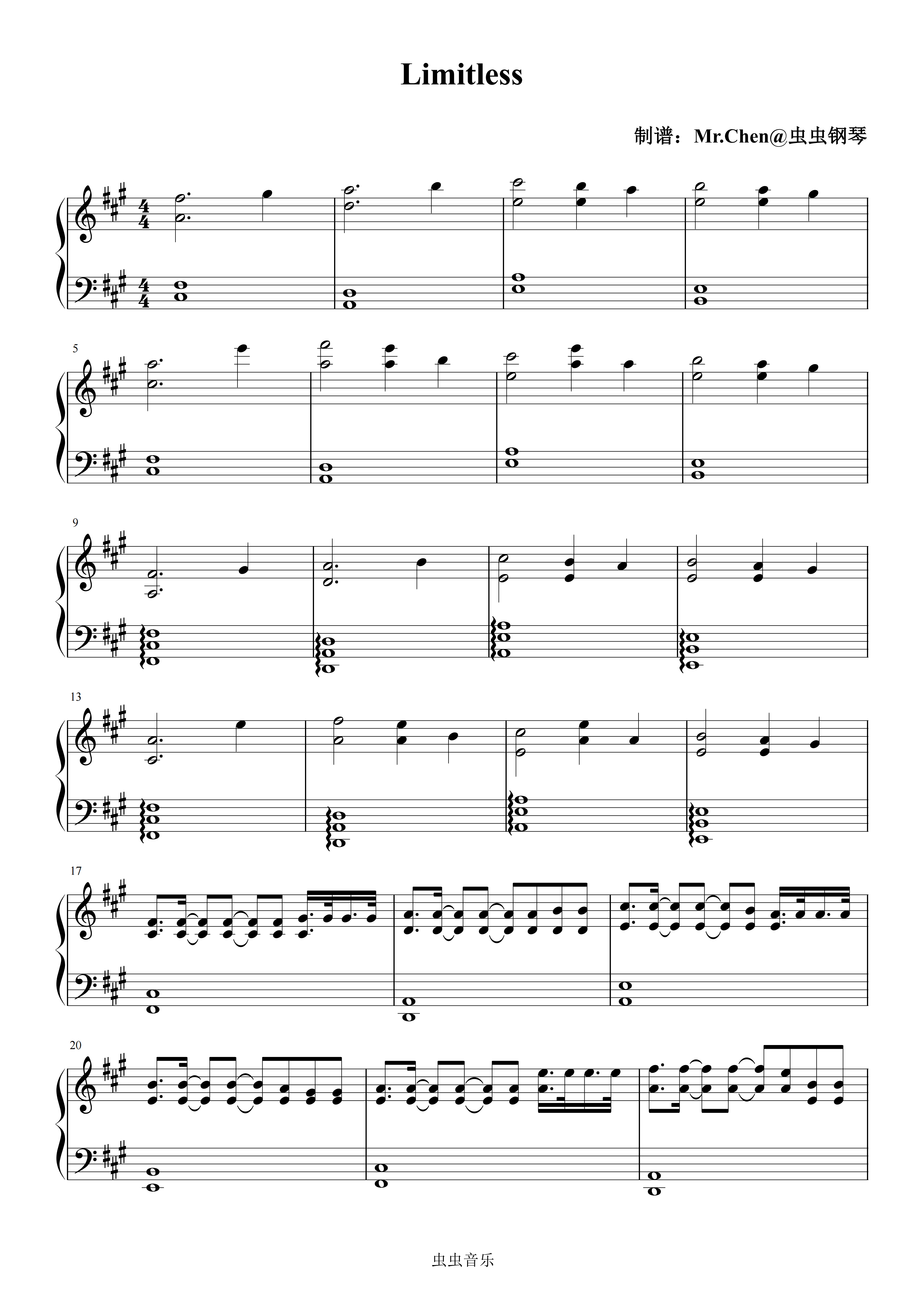 • 무한적아(LIMITLESS)钢琴简谱 C调 数字双手