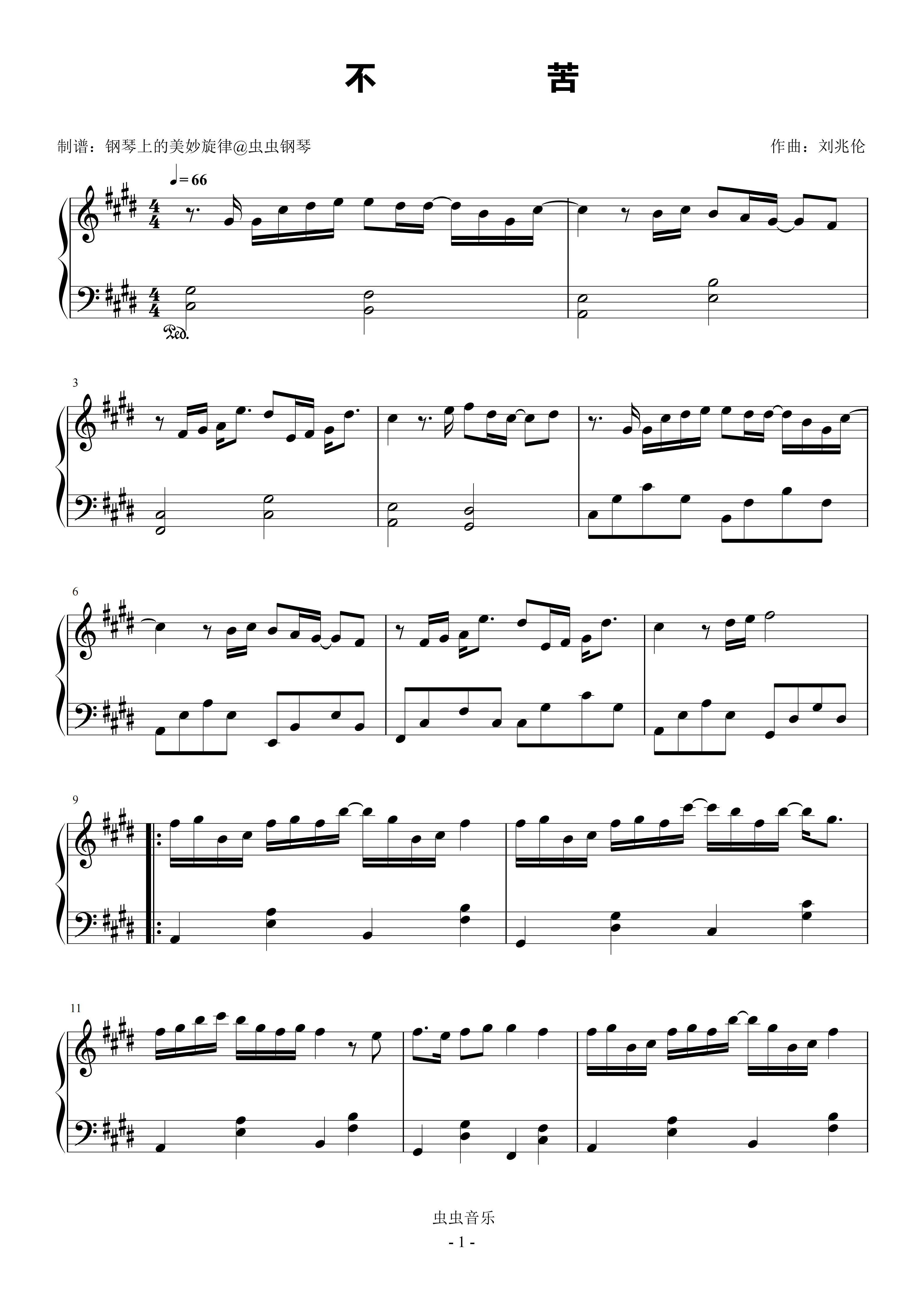 不苦钢琴简谱 数字双手