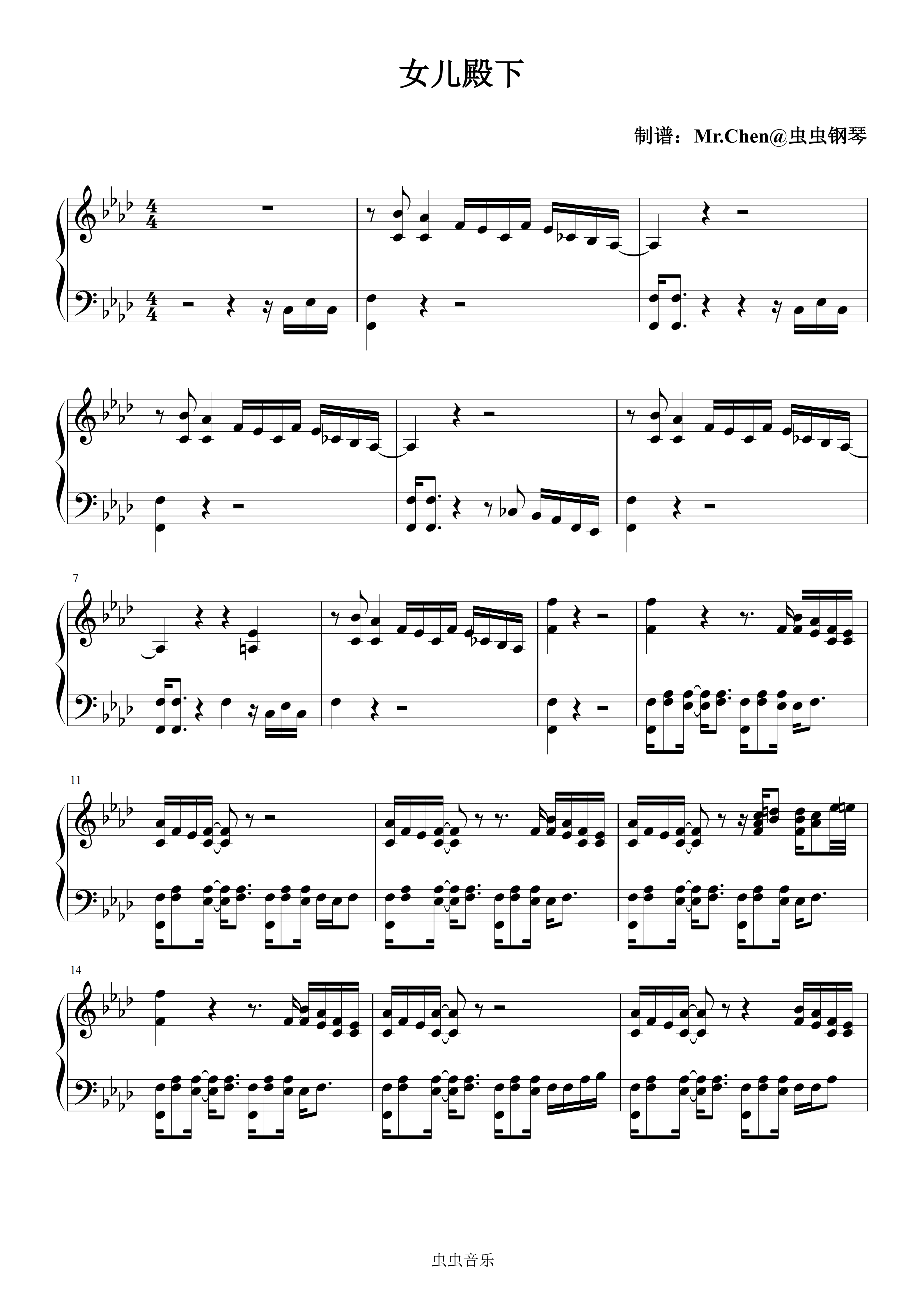 钢琴谱:女儿殿下 - 周杰伦 极度还原