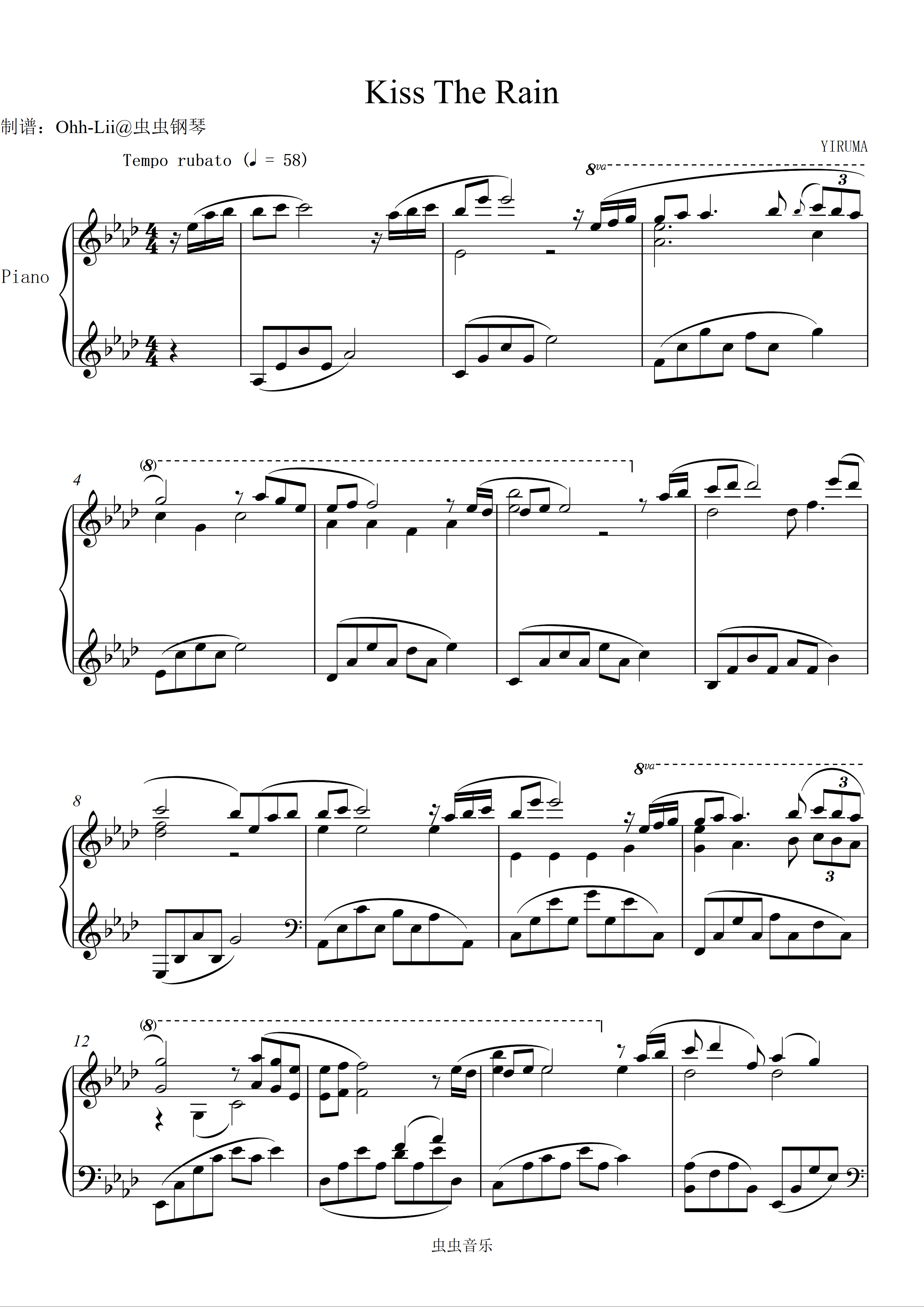 • Kiss The Rain钢琴简谱 ab调 数字双手