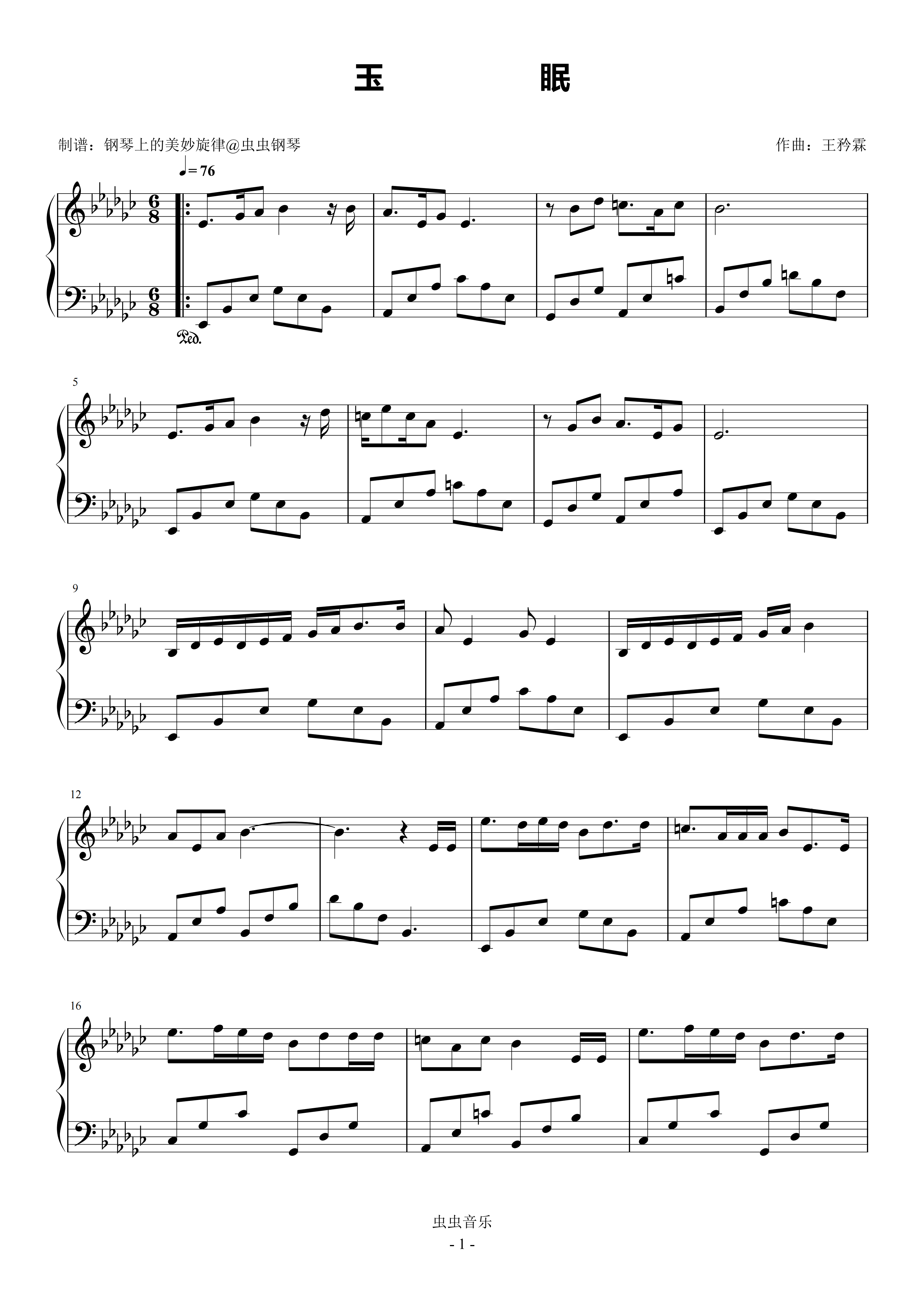 钢琴谱:玉眠 原调简易版 刘宇宁 月鳞绮纪