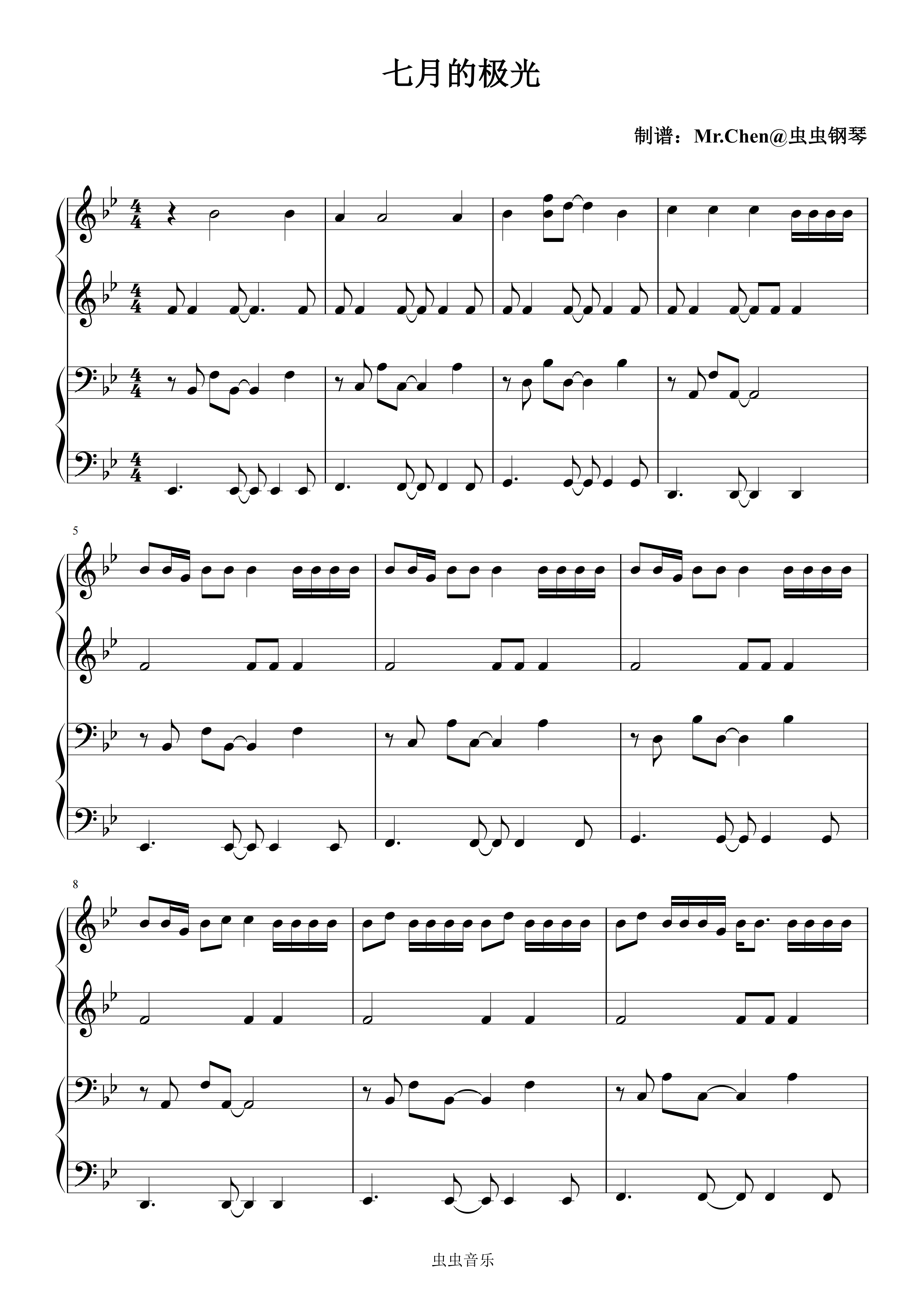 钢琴谱:七月的极光 (四手联弹)- 周杰伦