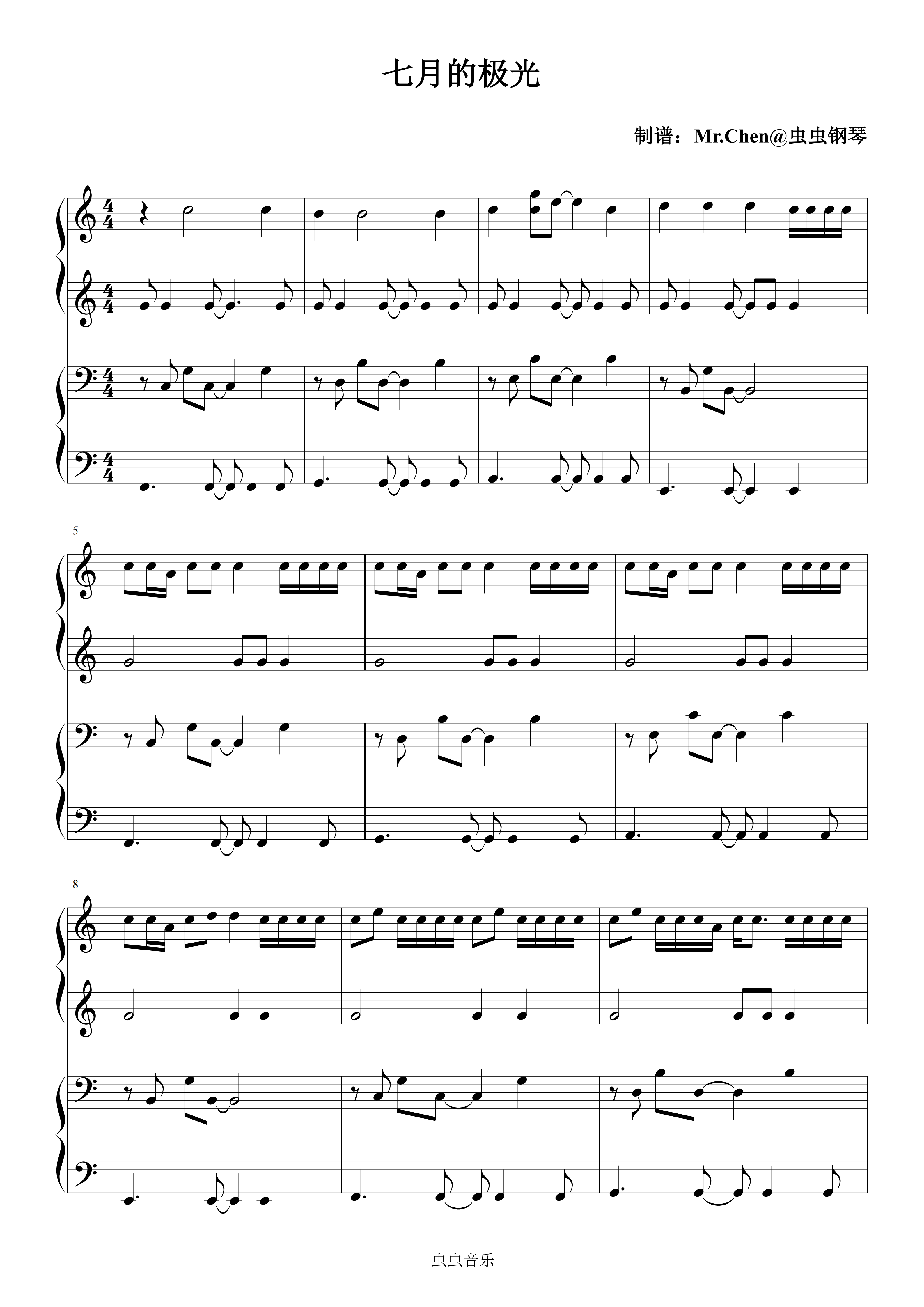 钢琴谱:七月的极光 (四手联弹)C调 - 周杰伦