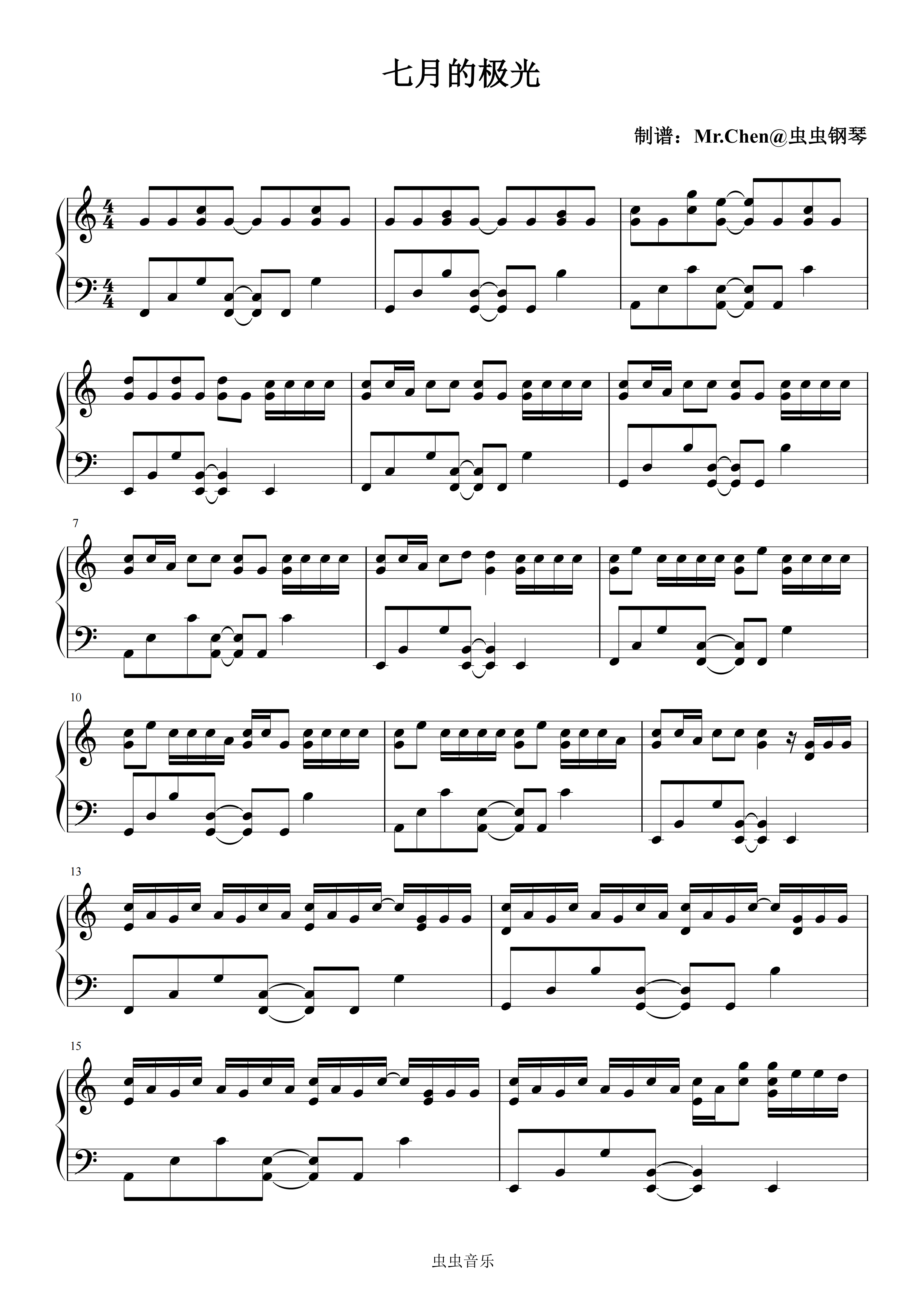 钢琴谱:七月的极光 C调 - 周杰伦 极度还原
