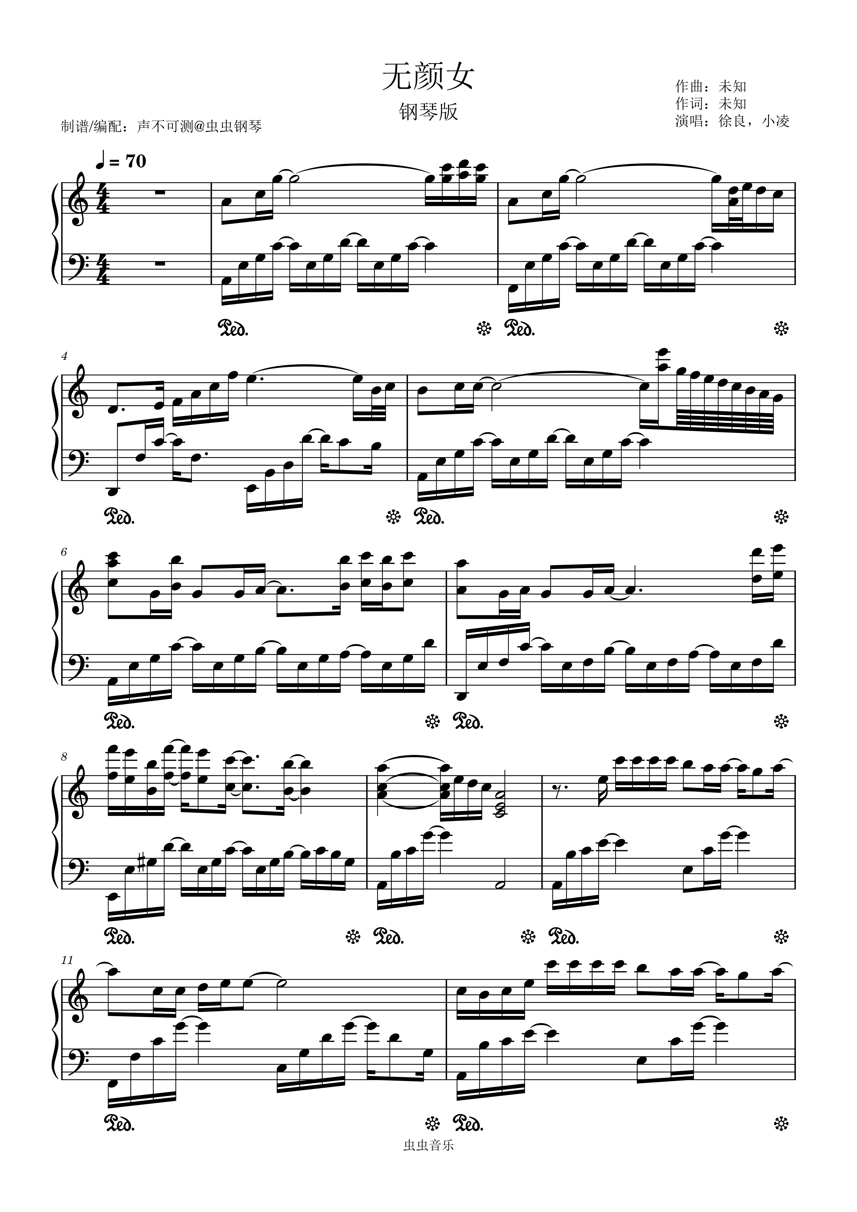 钢琴谱:《无颜女》高度还原 - 声不可测
