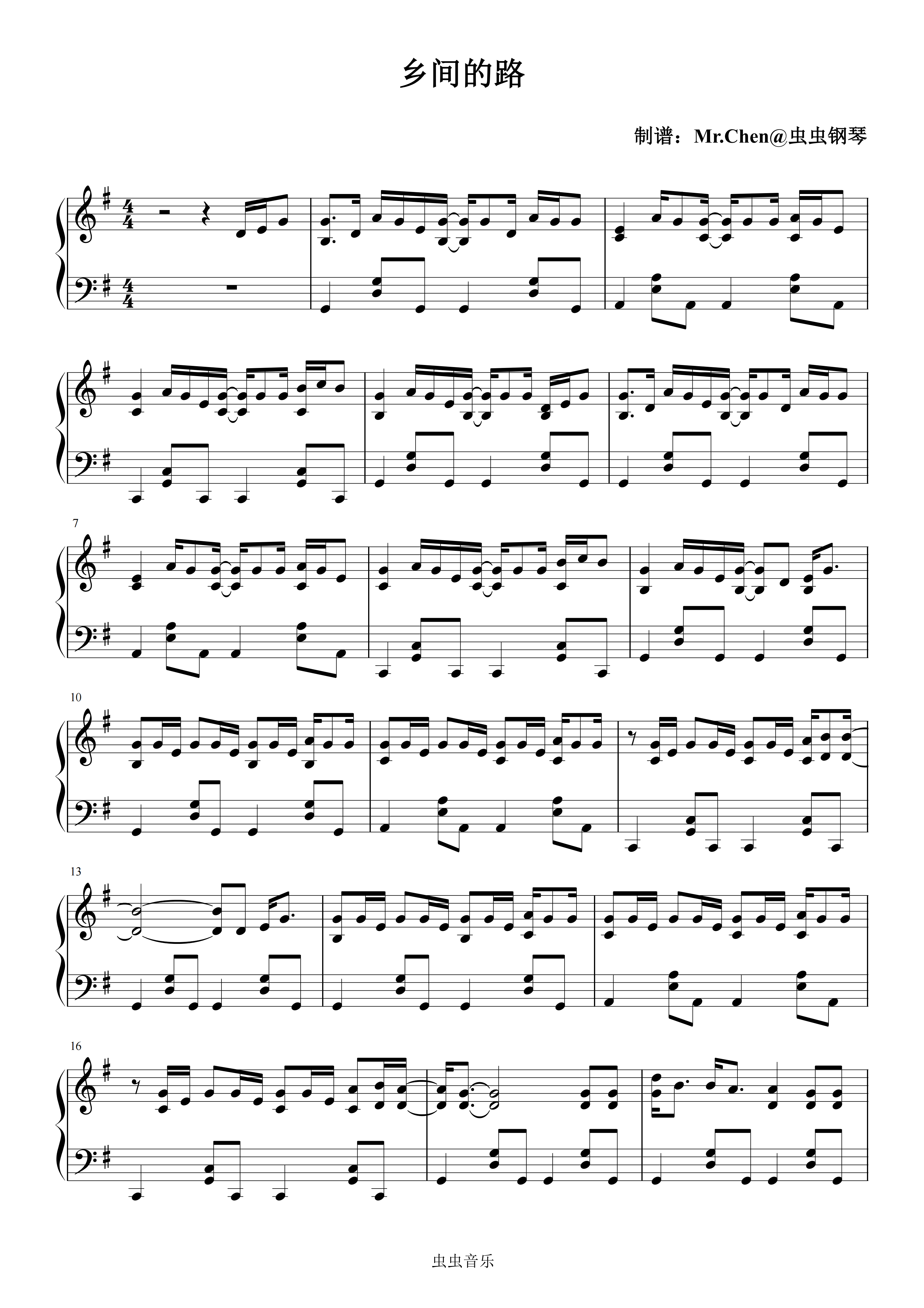 钢琴谱:乡间的路 G调 - 周杰伦 极度还原