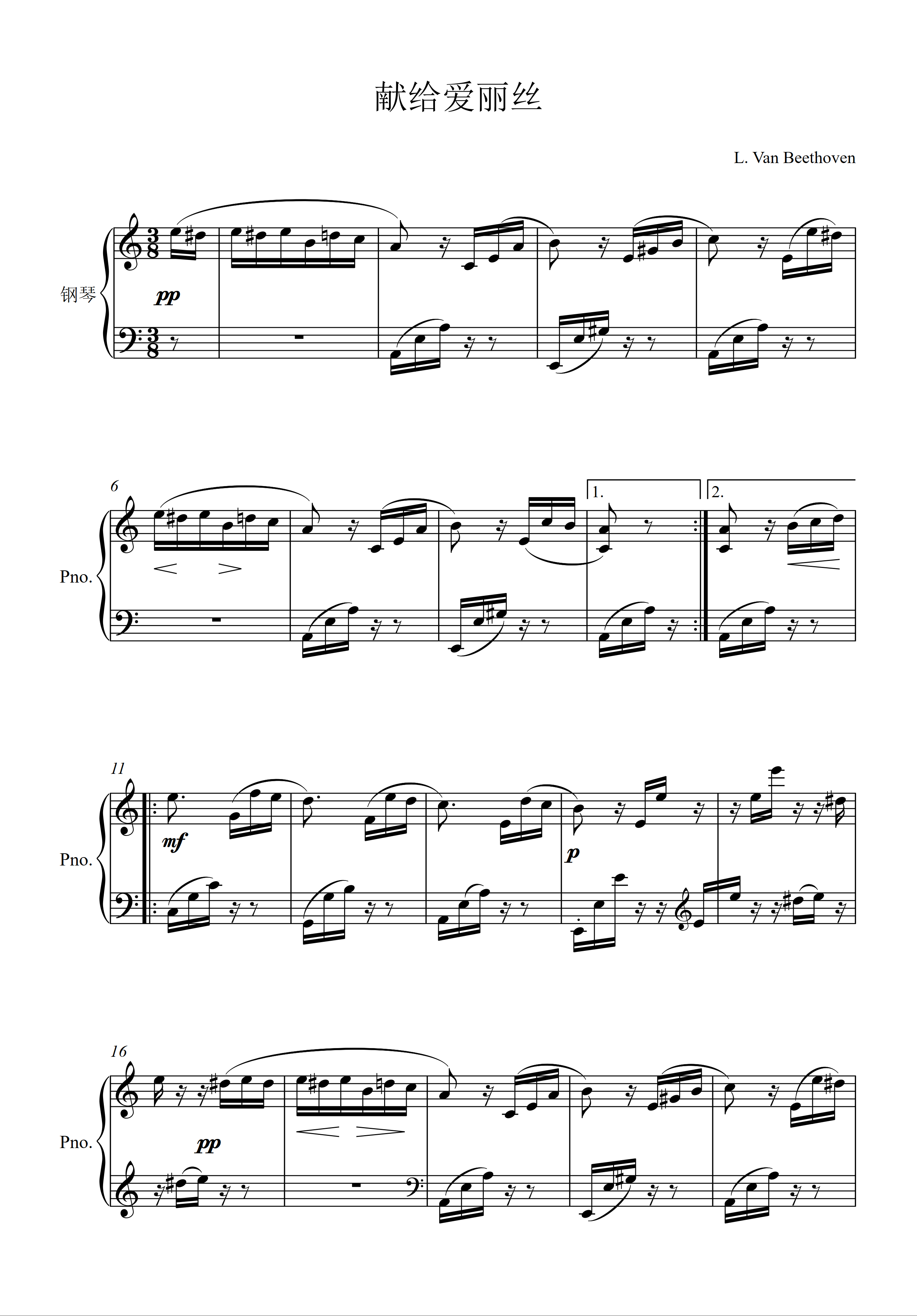 钢琴谱:124.献给爱丽丝