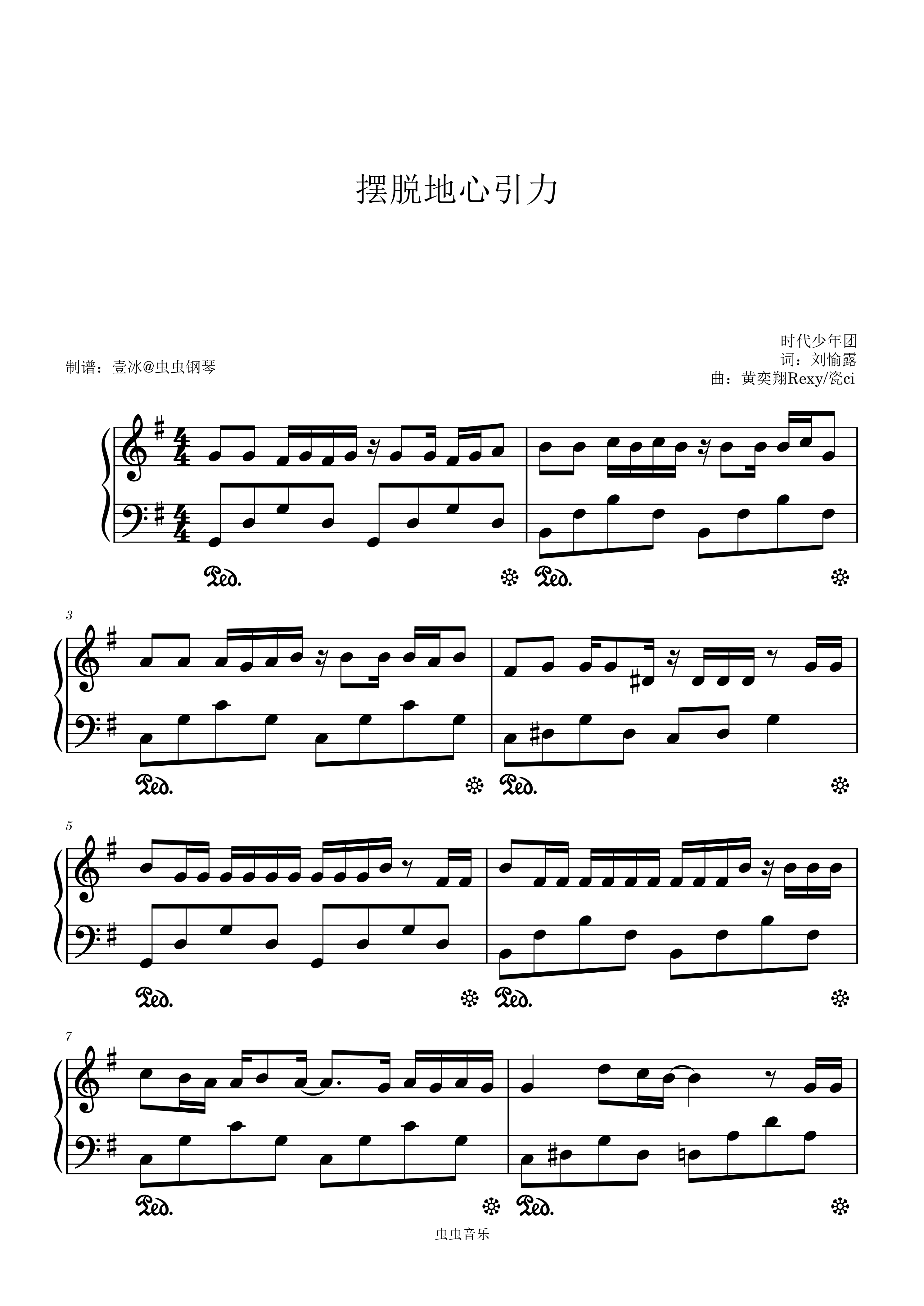 钢琴谱:摆脱地心引力 - 时代少年团 原调