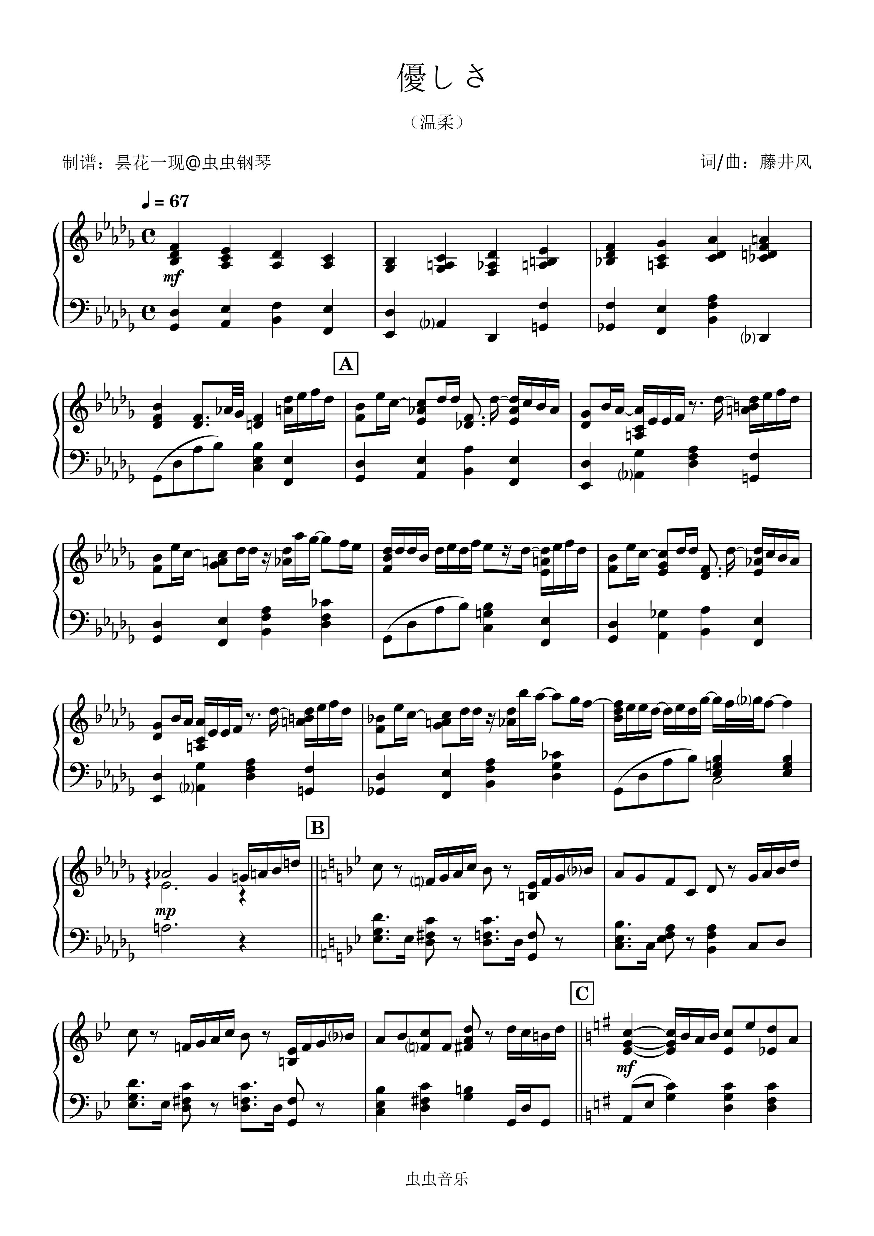• 優しい詩。钢琴简谱 C调 数字双手 松尾藍