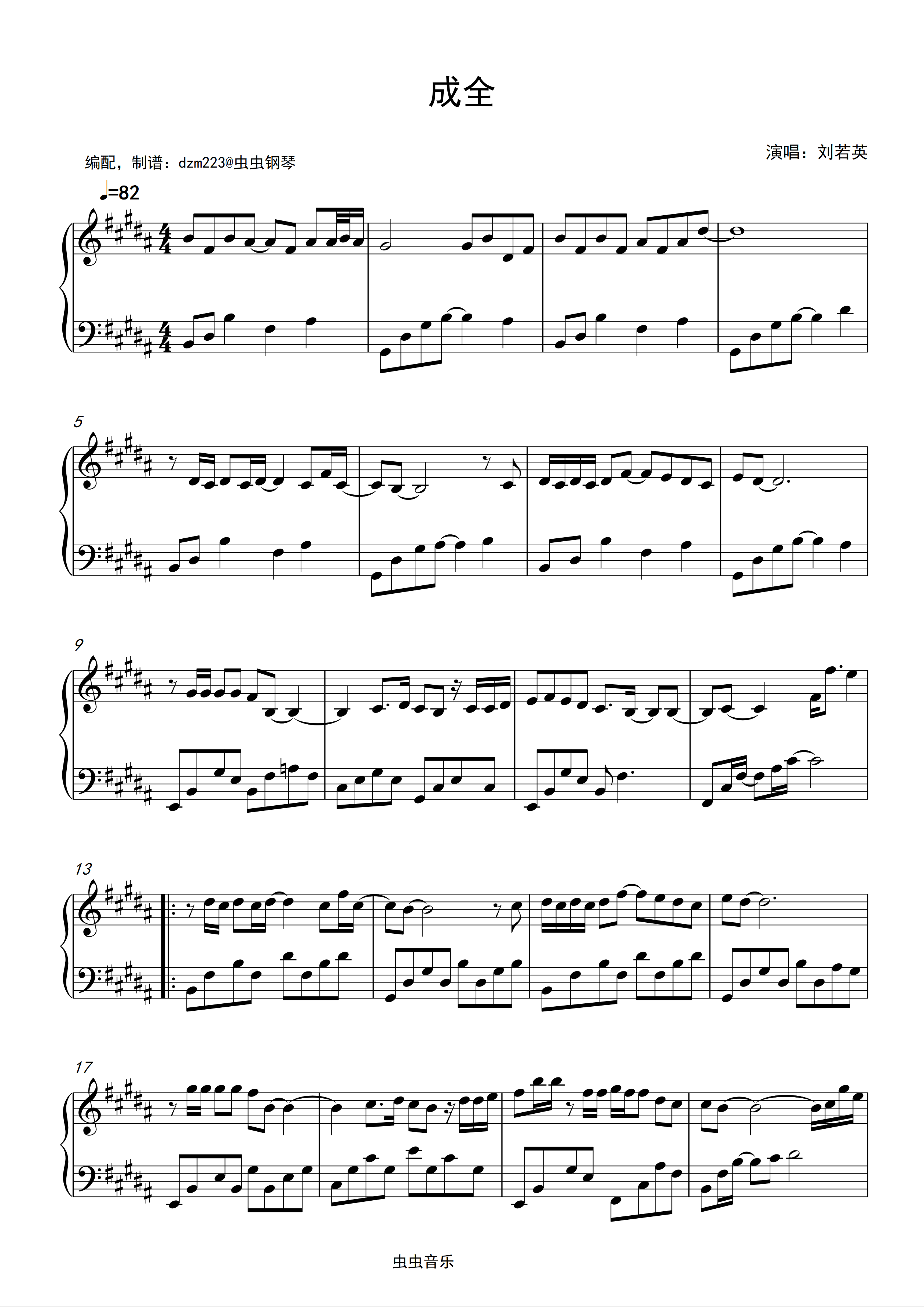 • 成全钢琴简谱 F调 数字双手 施立/陈没