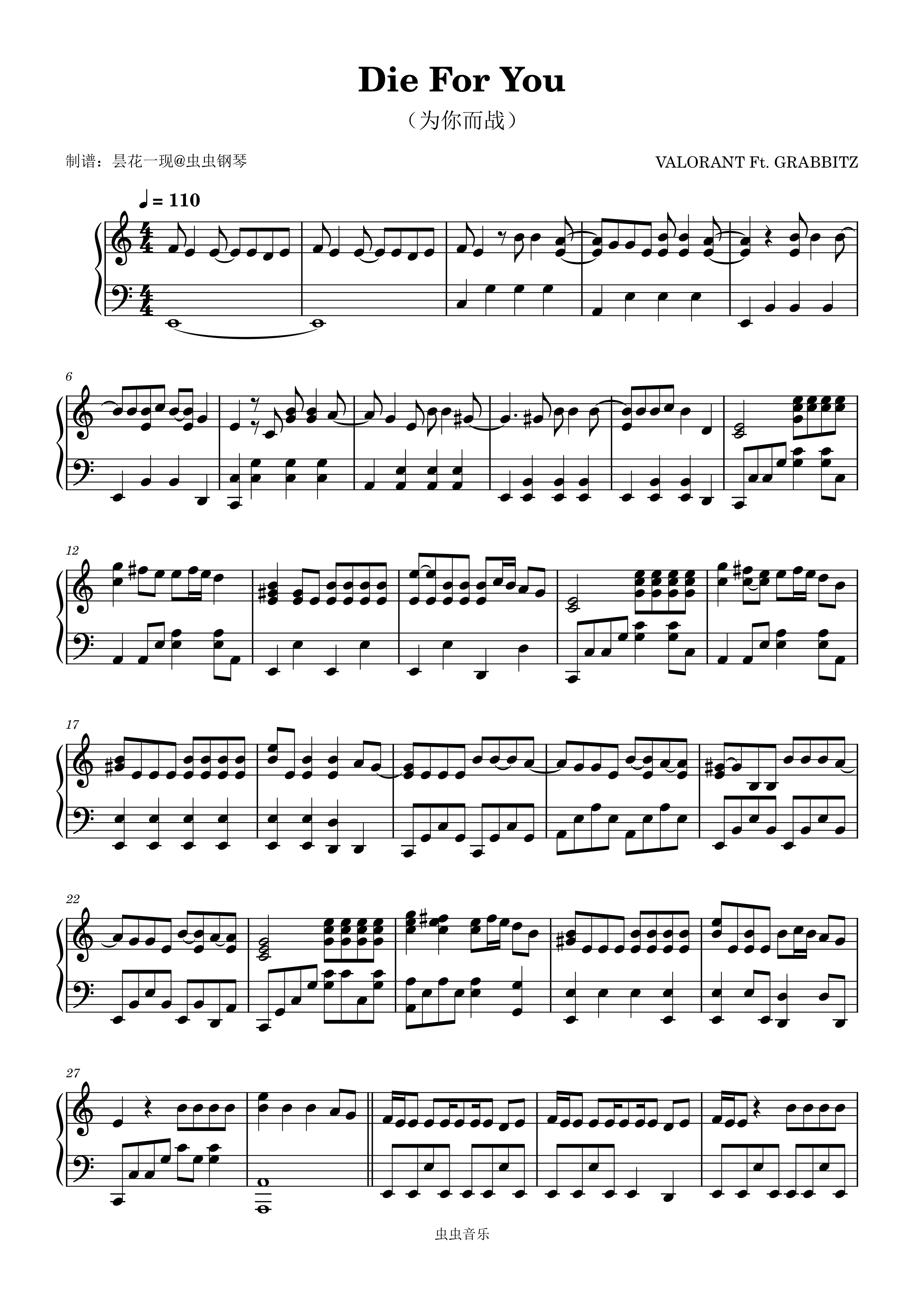 钢琴谱:Die For You (为你而战) VALORANT Ft. GRABBITZ
