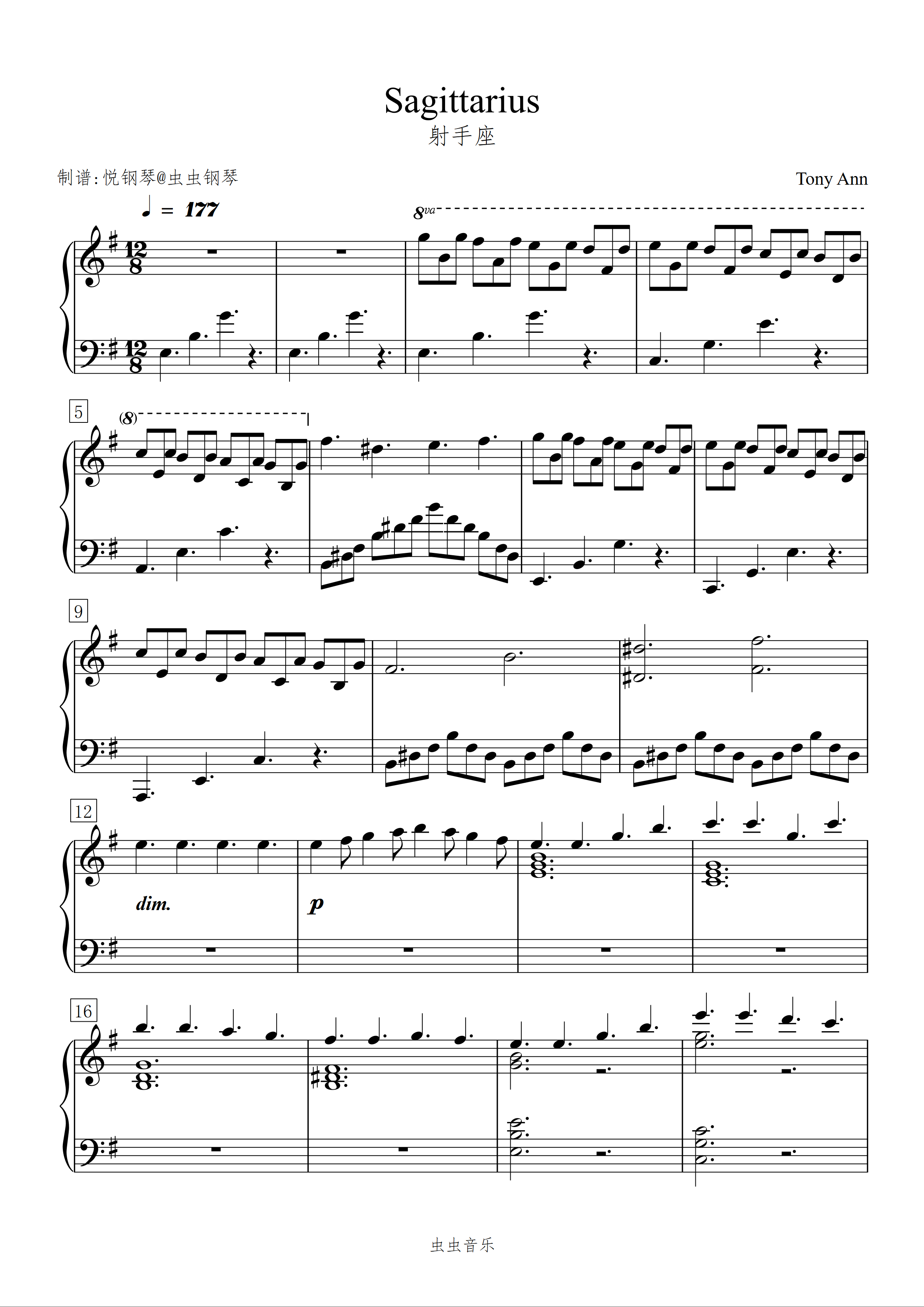 • 射手座与巨蟹座钢琴简谱 C#调 数字双手