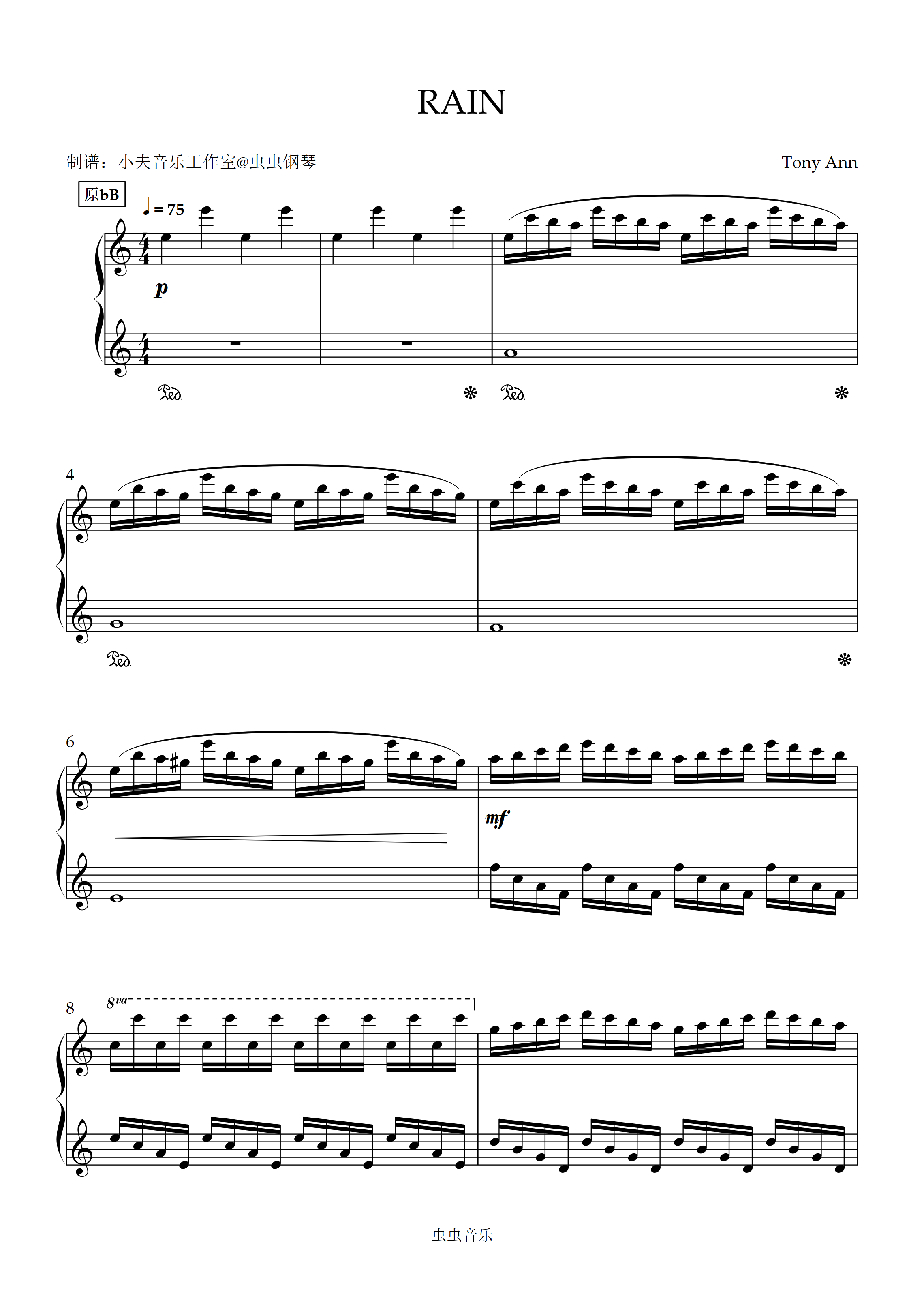 • Kiss The Rain钢琴简谱 C调 数字双手