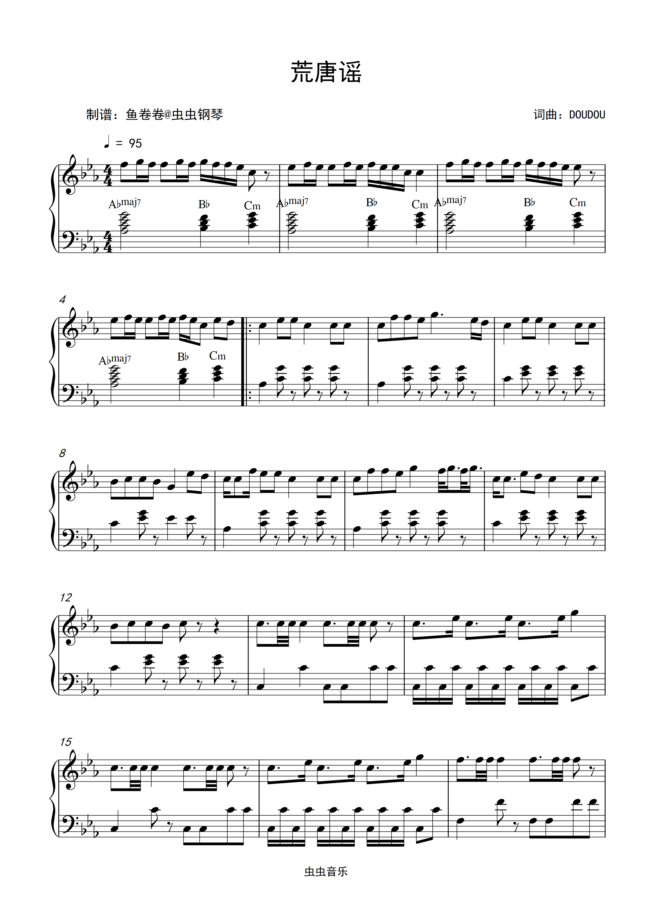 钢琴谱:荒唐谣-DOUDOU bE调钢琴谱 电影《燃比娃》宣传曲