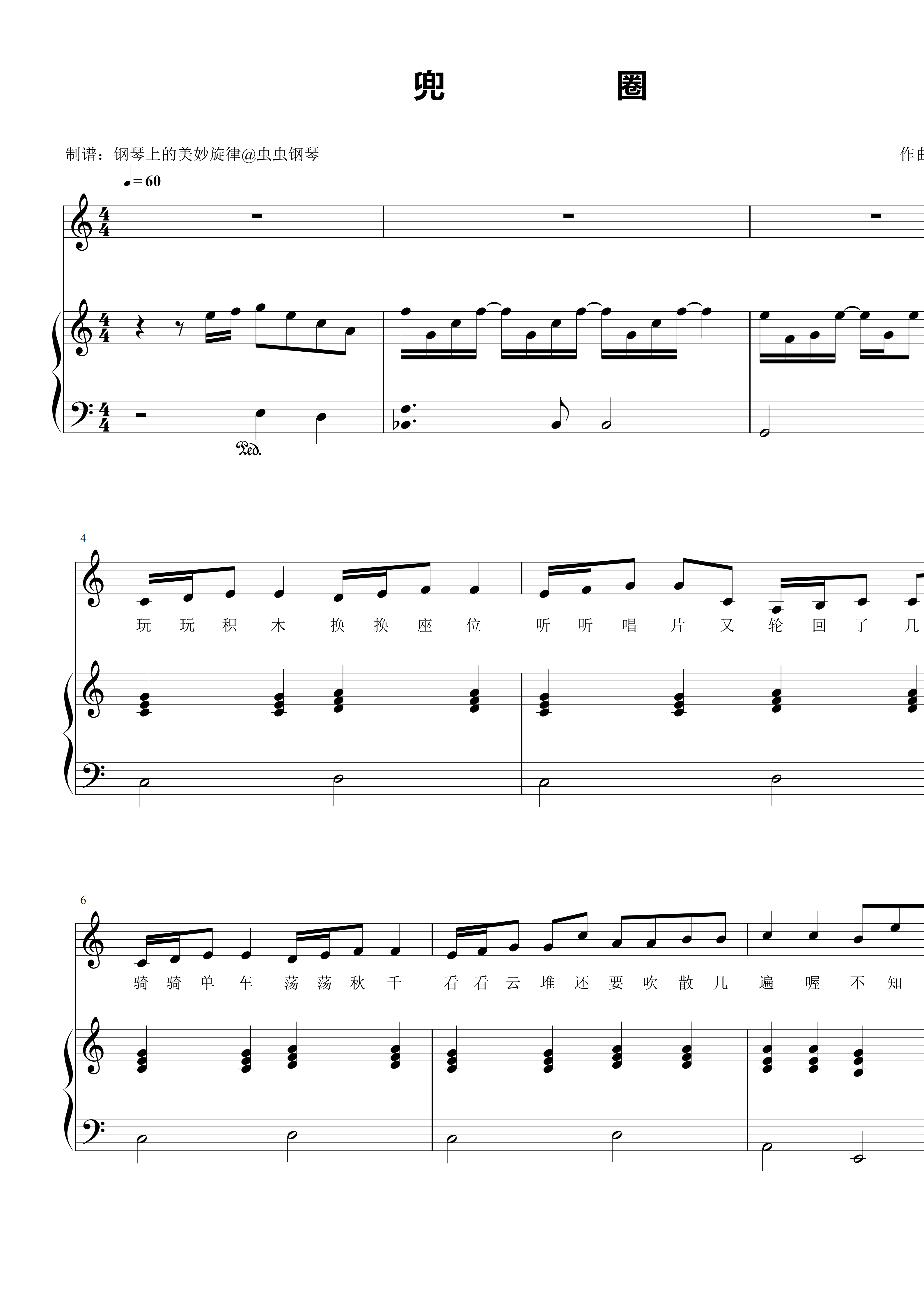 • 兜圈钢琴简谱 C调 数字双手 陈信延