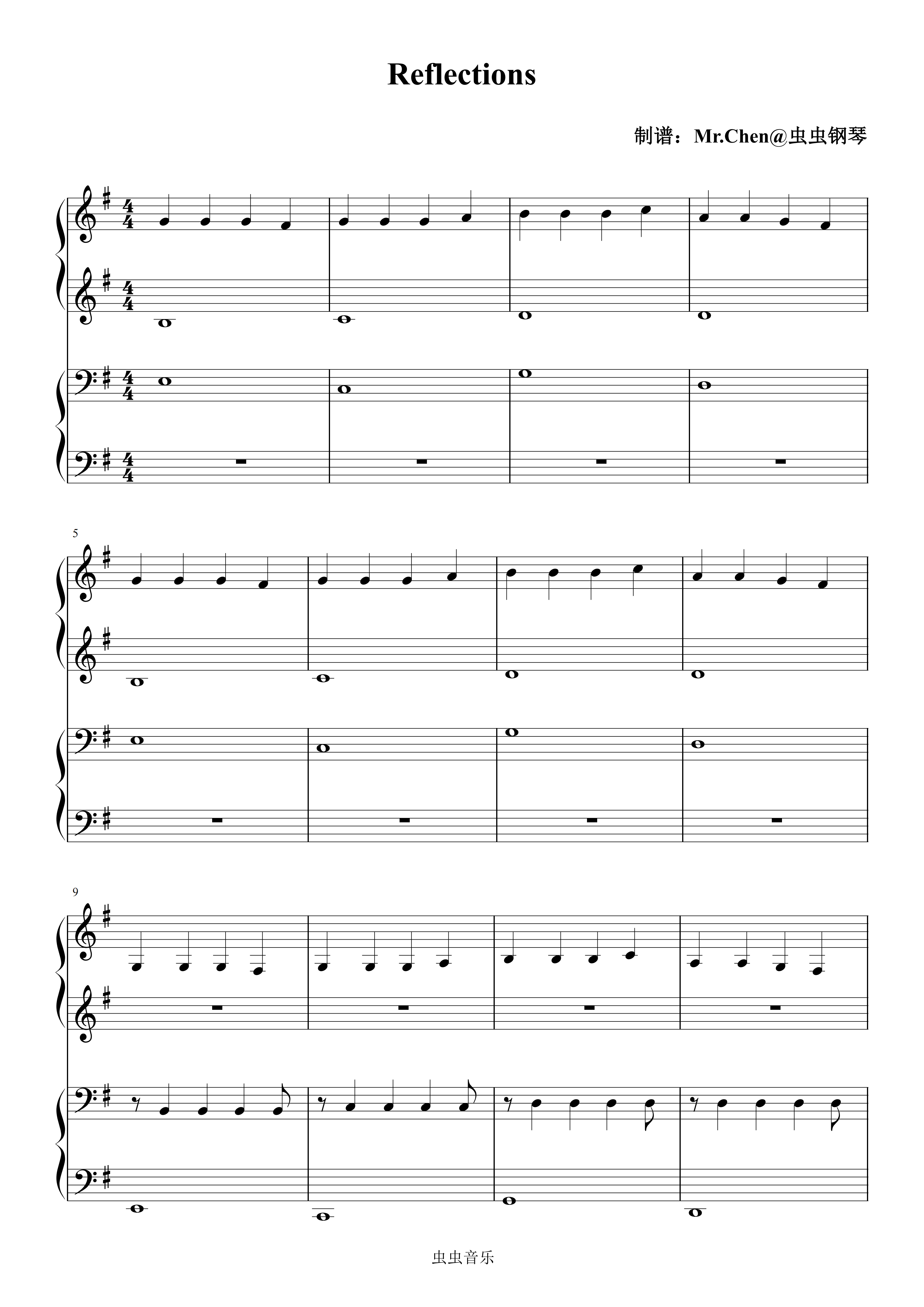钢琴谱:Reflections (四手联弹)- Tony Ann G调版