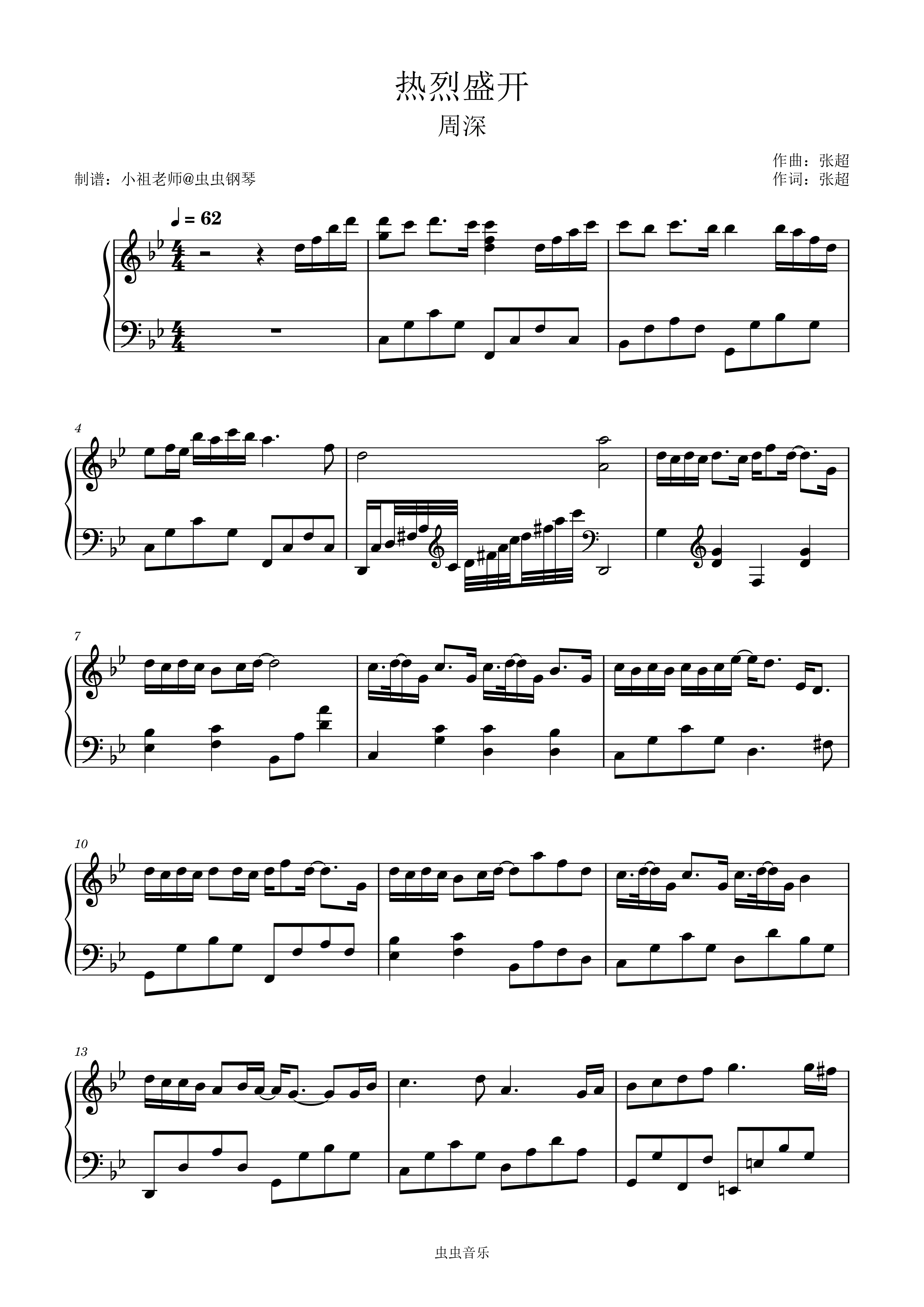 • 紫荆花盛开钢琴简谱 B调 数字双手 卢文韬/一白/李伟