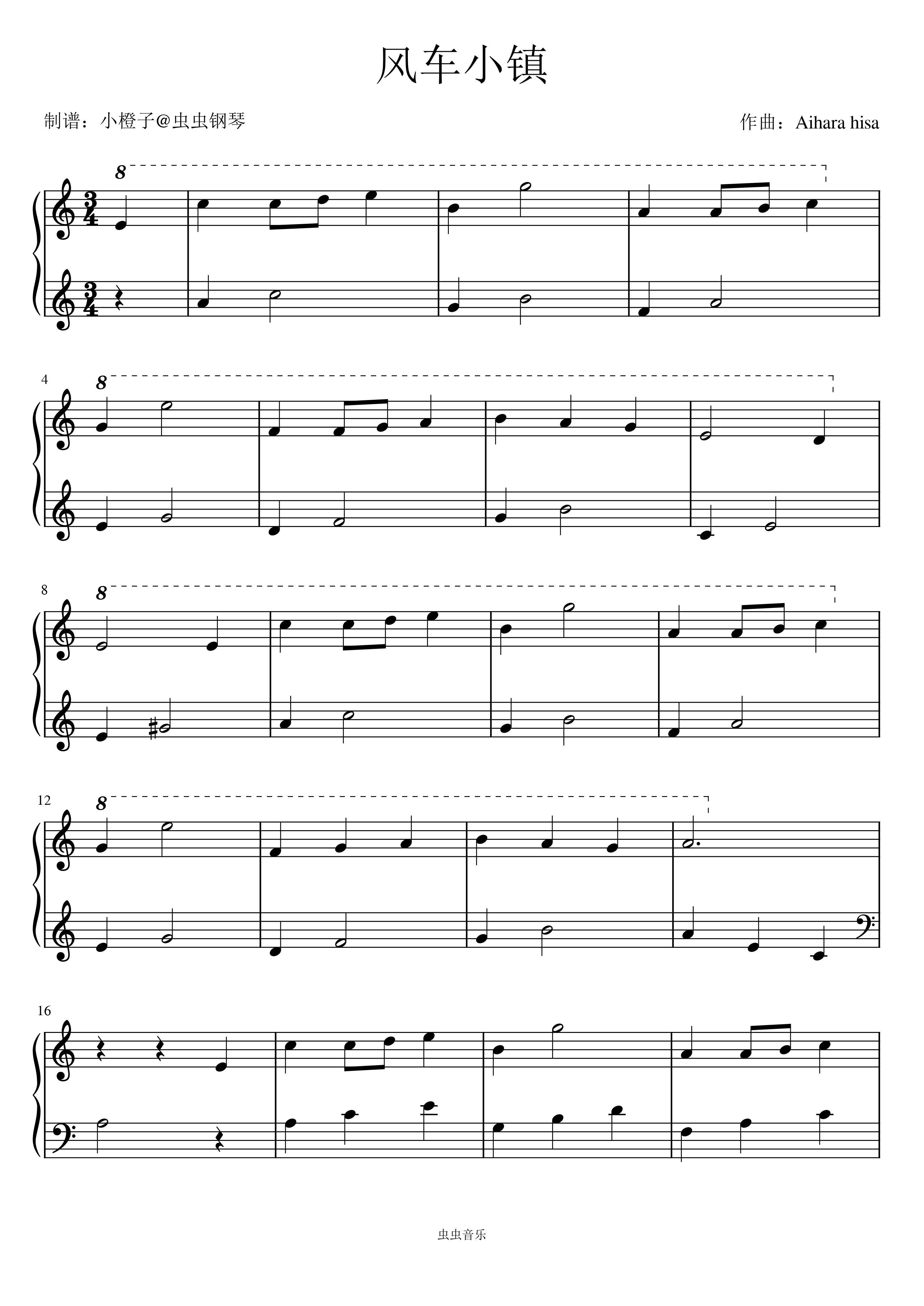 钢琴谱:超简单C调《风车小镇》+Town of Windmill