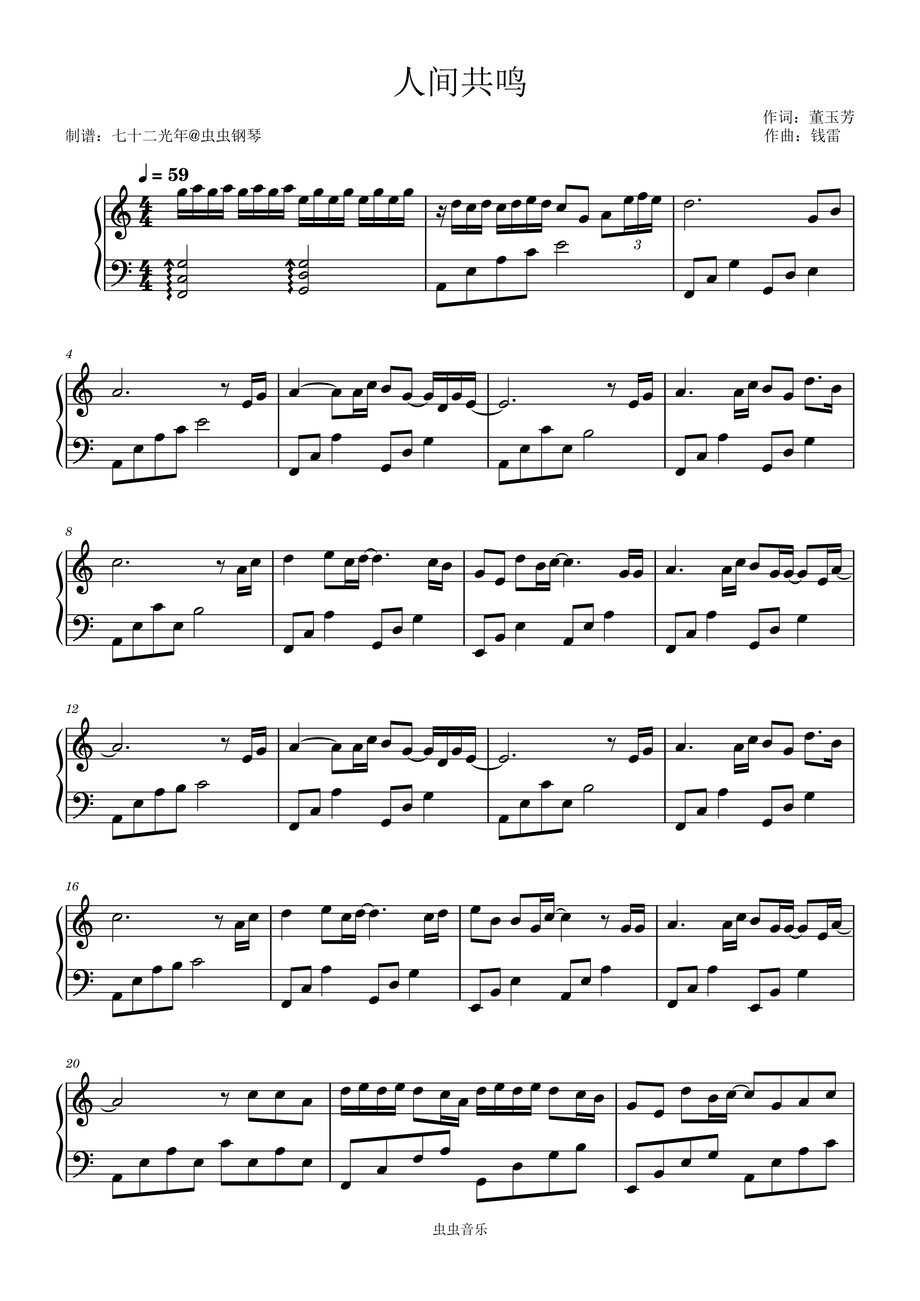 • 人间星河钢琴简谱 C调 数字双手 安九