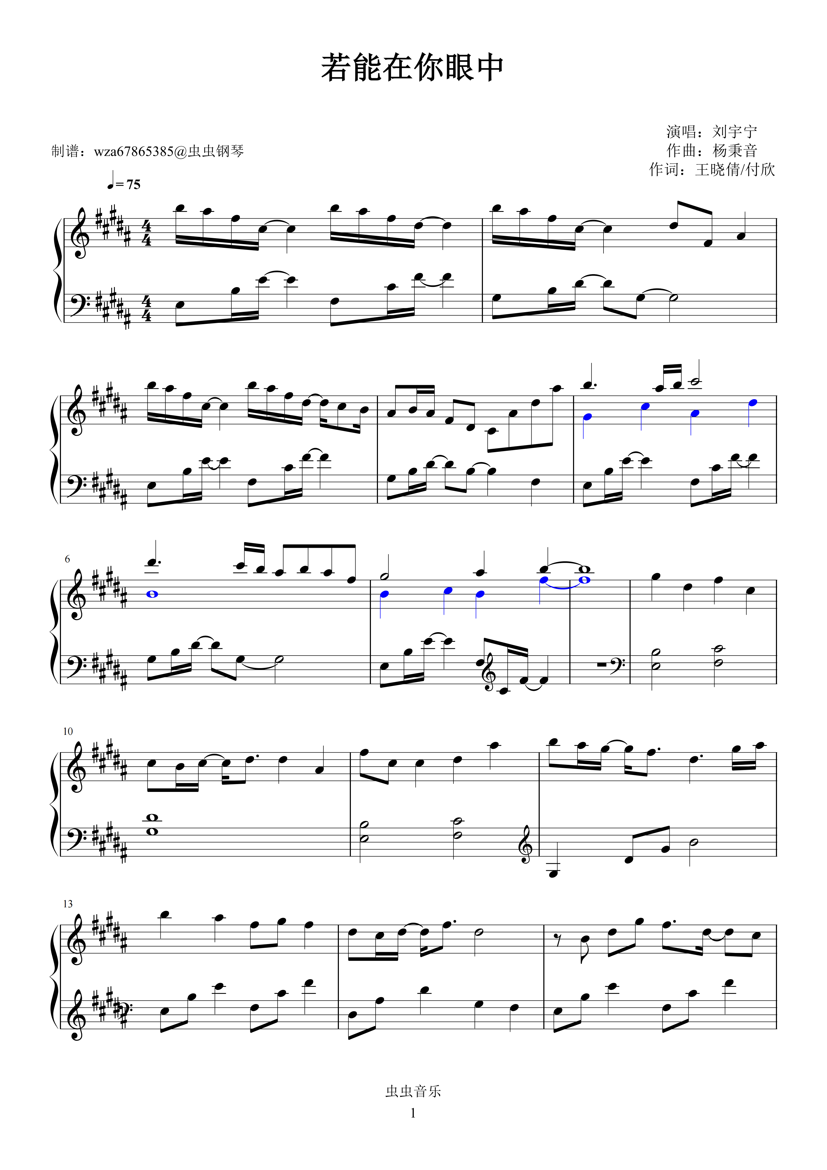 钢琴谱:若能在你眼中